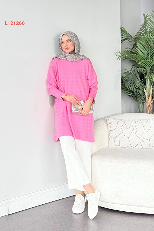 استمتع بالأناقة والراحة مع تونيك "هازامودا" بتصميم "كاز آياق" المذهل. مصنوع من قماش المرسريز الناعم بلون وردي جذاب، يمنحك هذا التونيك مظهراً عصريًا مع لمسة من الأناقة، مما يجعله مثاليًا لمناسباتك اليومية. ارتديه بسهولة مع بنطال مفضل لديك للحصول على إطلالة أنيقة ومريحة في كل الأوقات.