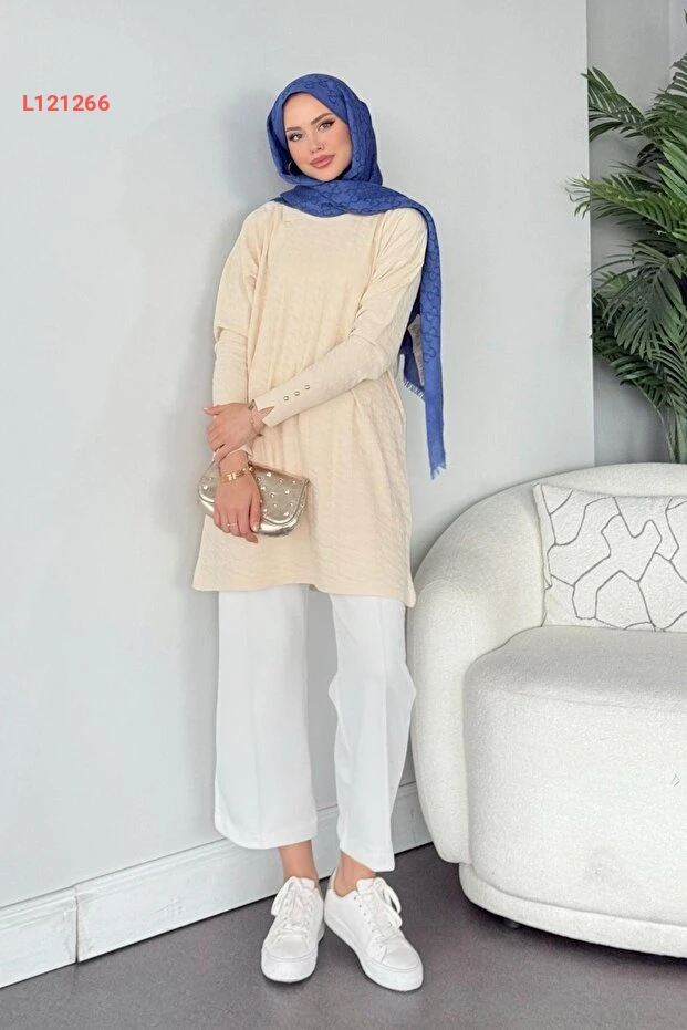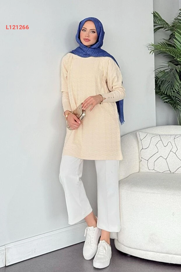 تونيك مرسرايز مزين بتصميم قماش الكاز آياج - لون إكرو