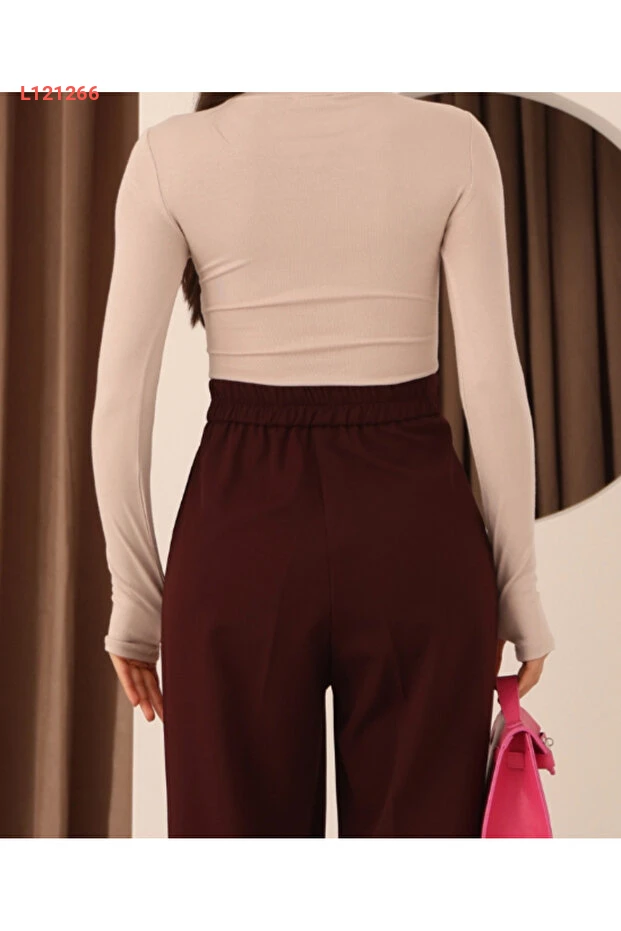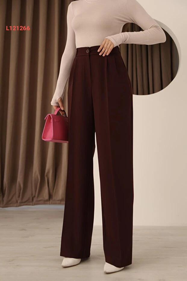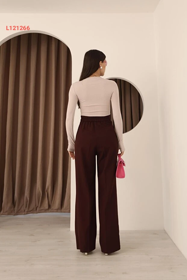بنطال بالازو نسائي من هازيل بخصر مطاطي وموديل الكرز