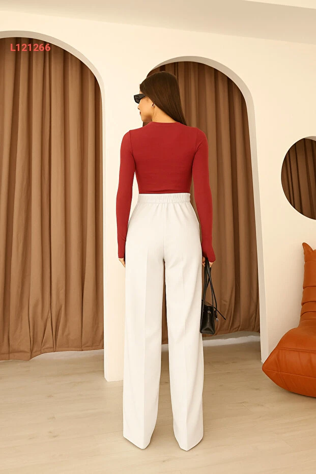 استمتعي بإطلالة عصرية ومريحة مع بنطلون بالازو النسائي من هازيل، الذي يأتي بتصميم أنيق بلون أبيض جذاب. يتميز بخصره المرن الذي يوفر لكِ الراحة في كل لحظة، مما يجعله خيارًا مثاليًا للمناسبات اليومية أو الخروجات المسائية. ارتديه مع بلوزة أنيقة لتكملة إطلالتك المثالية!