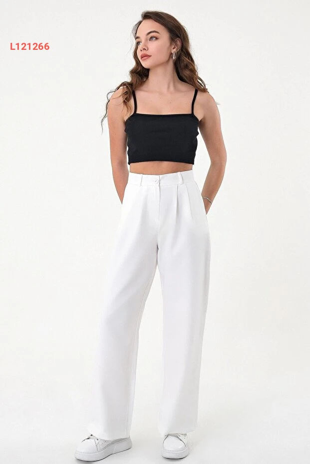استمتعي بالأناقة الفائقة مع بنطلون بالازو العالي الخصر من هازيل. تصميمه المريح والأنيق يضمن لكِ إطلالة جذابة في كل مناسبة، بينما يمنحك القصة الفضفاضة حرية الحركة والراحة المثالية. اجعلي هذا البنطلون جزءًا أساسيًا من خزانة ملابسك لإطلالات لا تُنسى!
