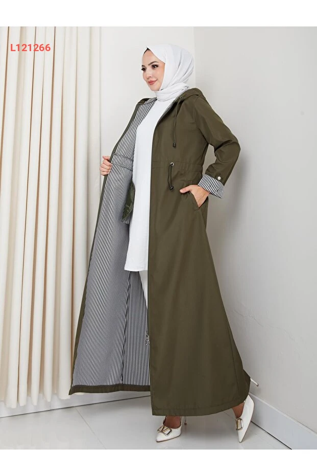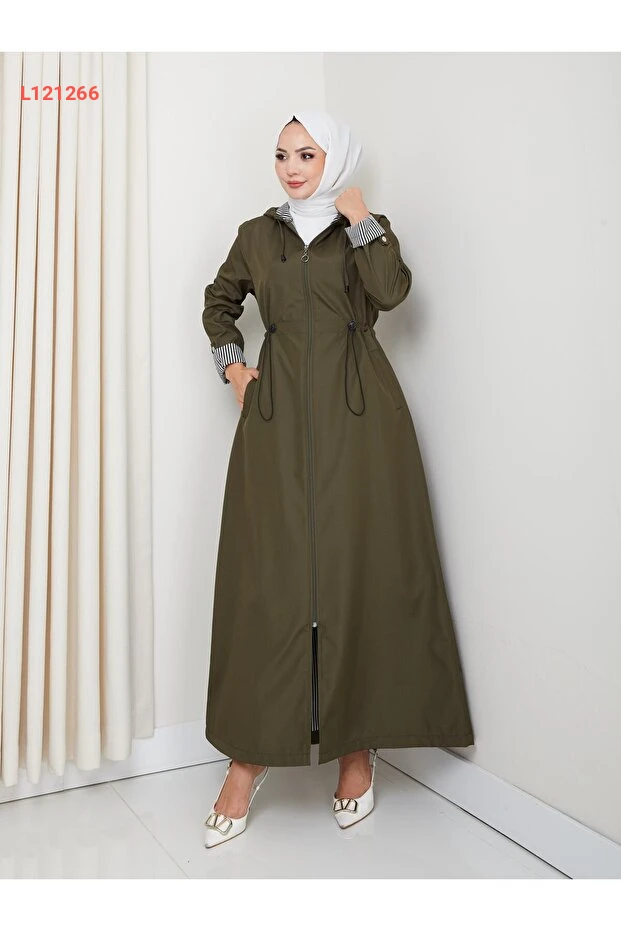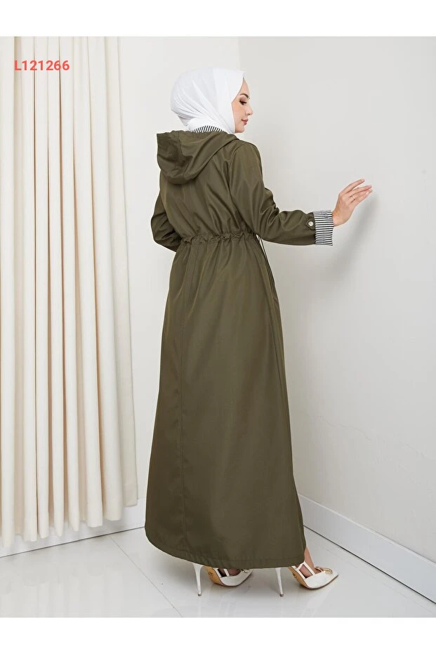 عباءة هارما النسائية بغطاء رأس مع تفاصيل خطية بلون الكاكي