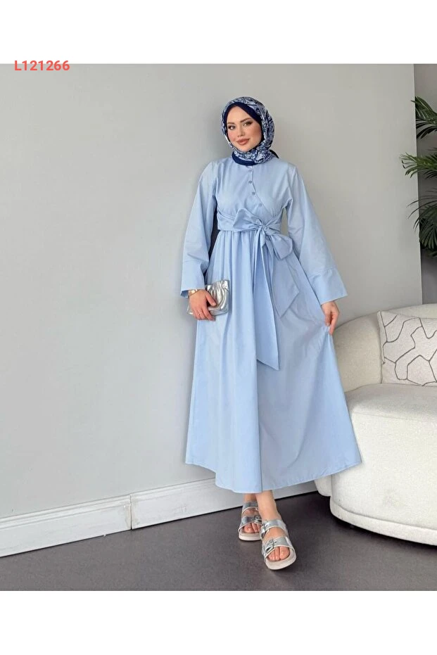 اكتشفي أناقة لا تضاهى مع فستان التستر أكباش بتفاصيل زر التداخل والمربوط. مصنوع من قماش البوبلين عالي الجودة، يوفر لك راحة استثنائية وأناقة فريدة في كل مناسبة. اجعلي إطلالتك متكاملة مع تصميم يجمع بين البساطة والذوق الرفيع.