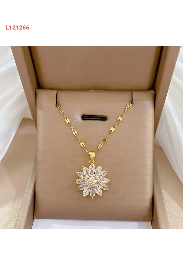 اكتشفي جمال الأناقة مع قلادة HEDİYELANDY بتصميم زهرة عباد الشمس، المزينة بأحجار زركونيا مكعبة متلألئة. هذه القلادة الراقية ليست فقط إكسسواراً جميلاً بل تعكس أيضاً ذوقك الرفيع، مما يجعلها الخيار المثالي كهدية قيمة متألقة لأحبائك في كل المناسبات.