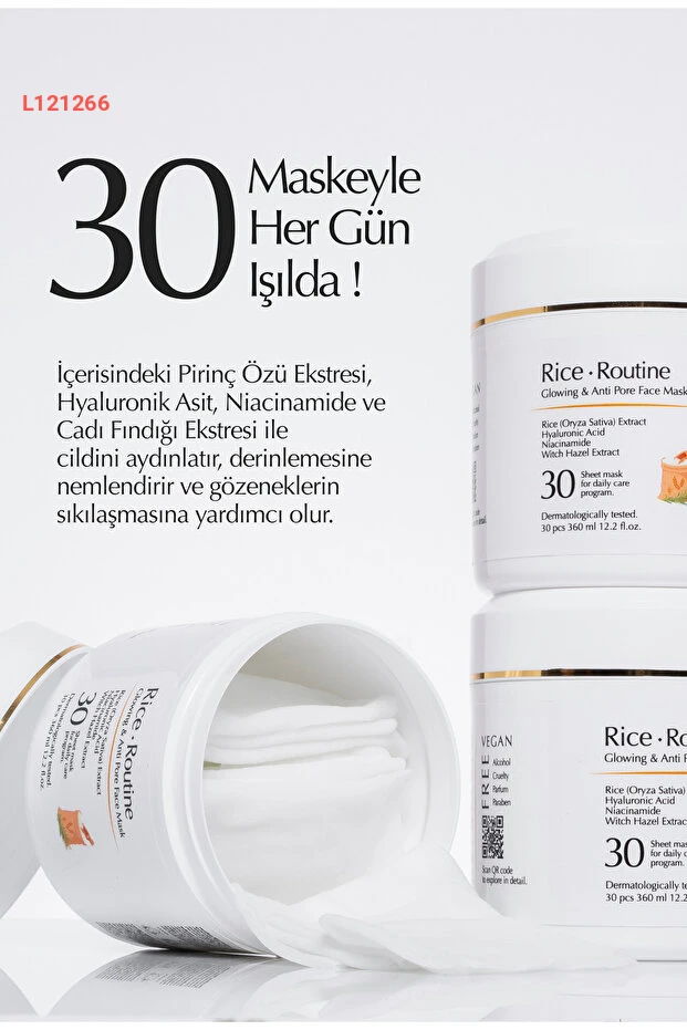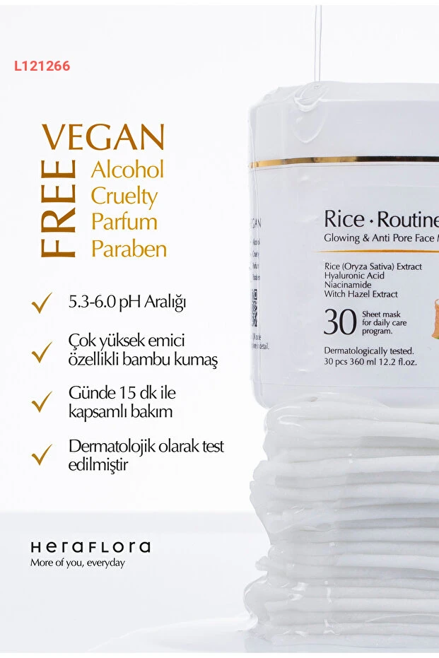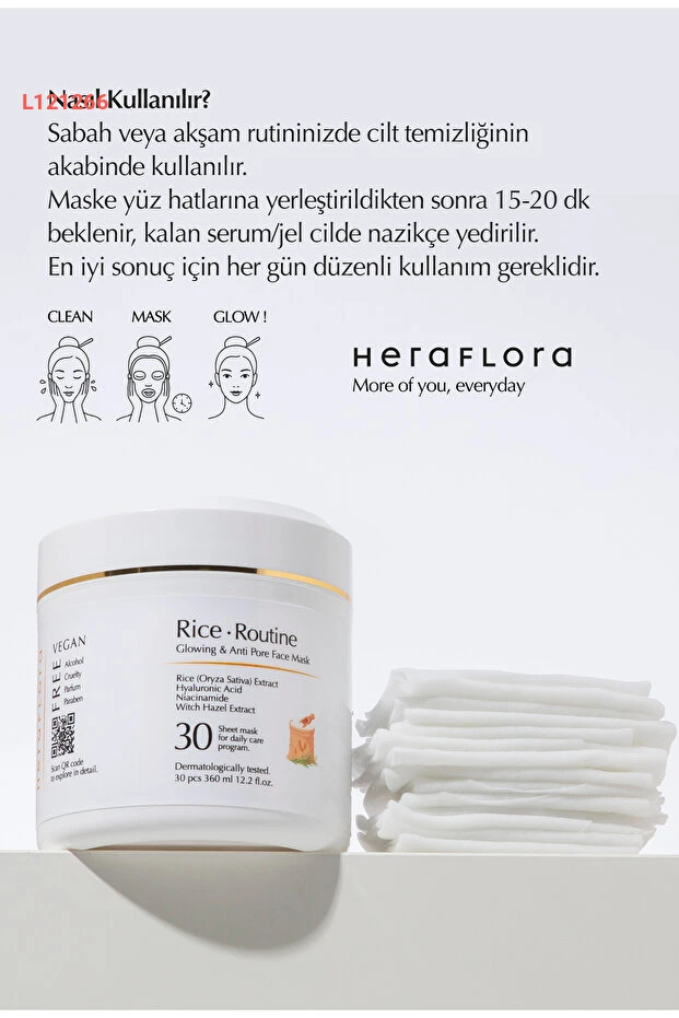 ماسكات هيرافلورا اليومية من الأرز لتفتيح البشرة وترطيبها وتقليص المسامات - 30 قطعة