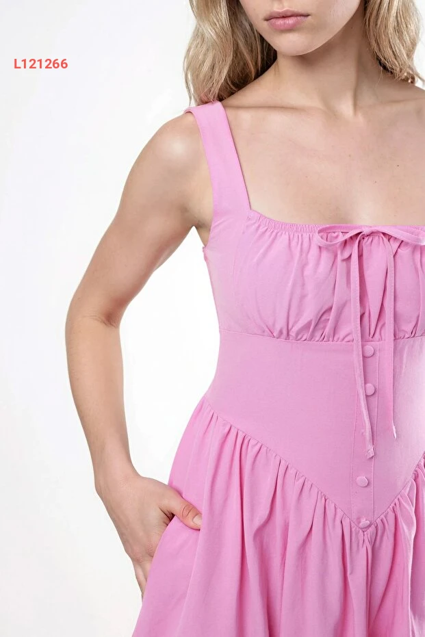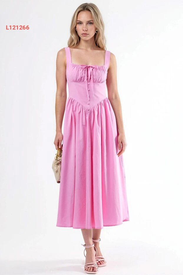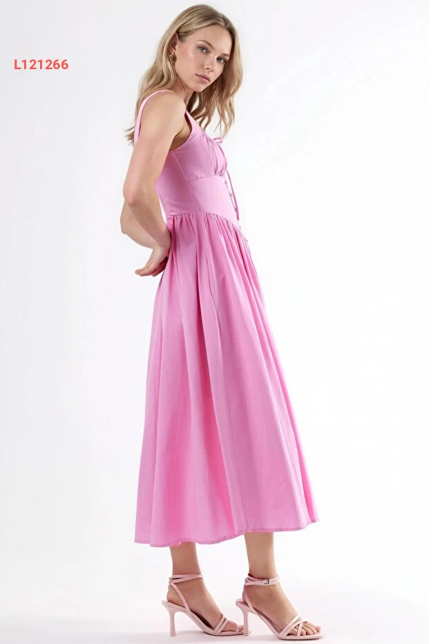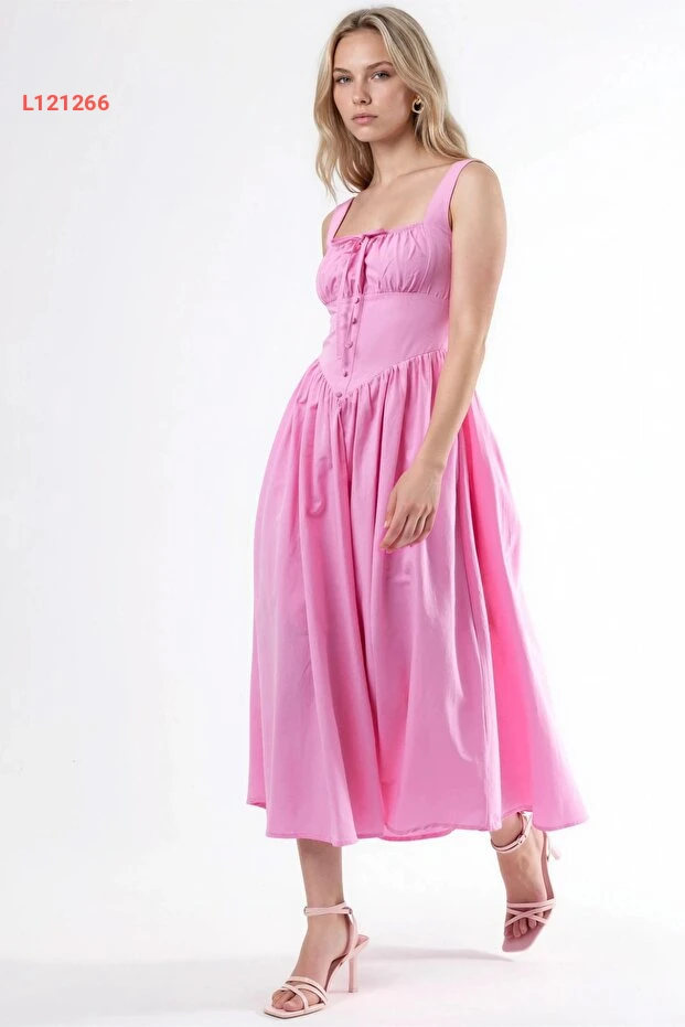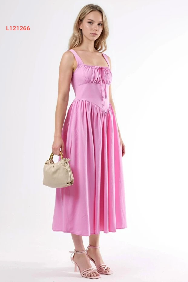 Hiccup BUSEM Düğmeli, Kare Yaka Midi Elbise عالي الجودة. مثالي للاستخدام اليومي مع متانة وتصميم ممتاز.