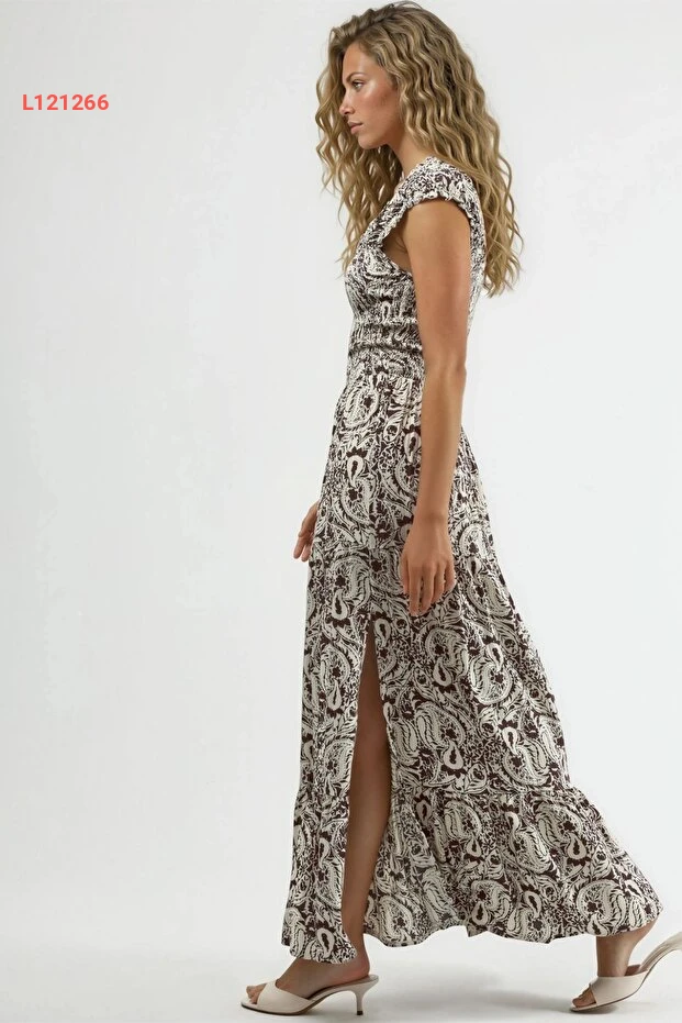 Hiccup BUSEM Kare Yaka Desenli Maxi Elbise