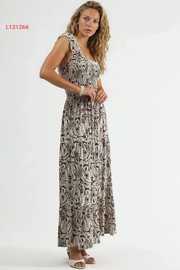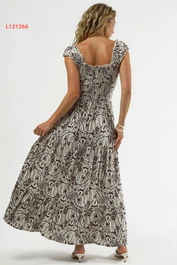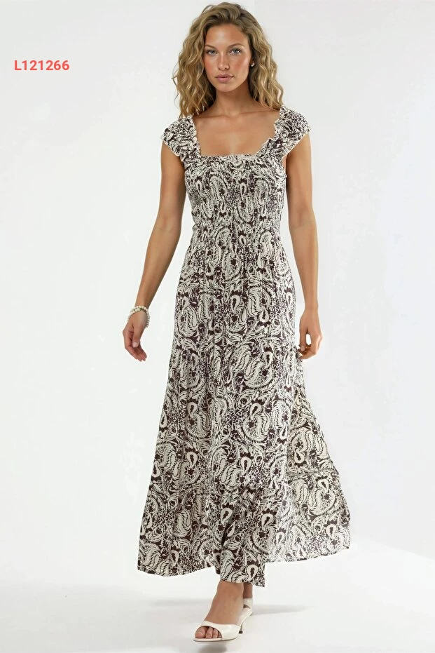 Hiccup BUSEM Kare Yaka Desenli Maxi Elbise عالي الجودة. مثالي للاستخدام اليومي مع متانة وتصميم ممتاز.