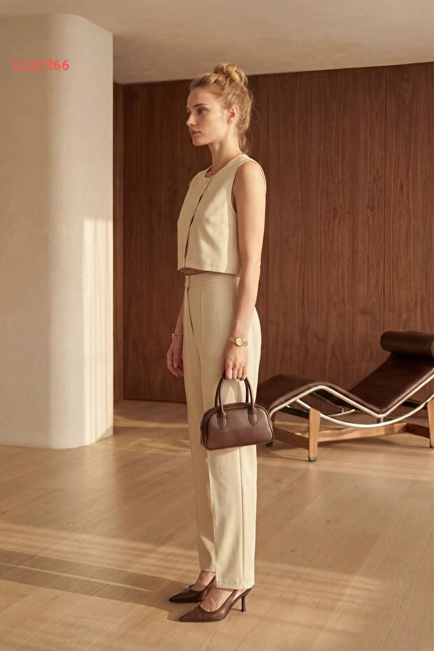 تشكيلة موضة هيكوب: سترة كروب بياقة دائرية وسروال عالي الخصر