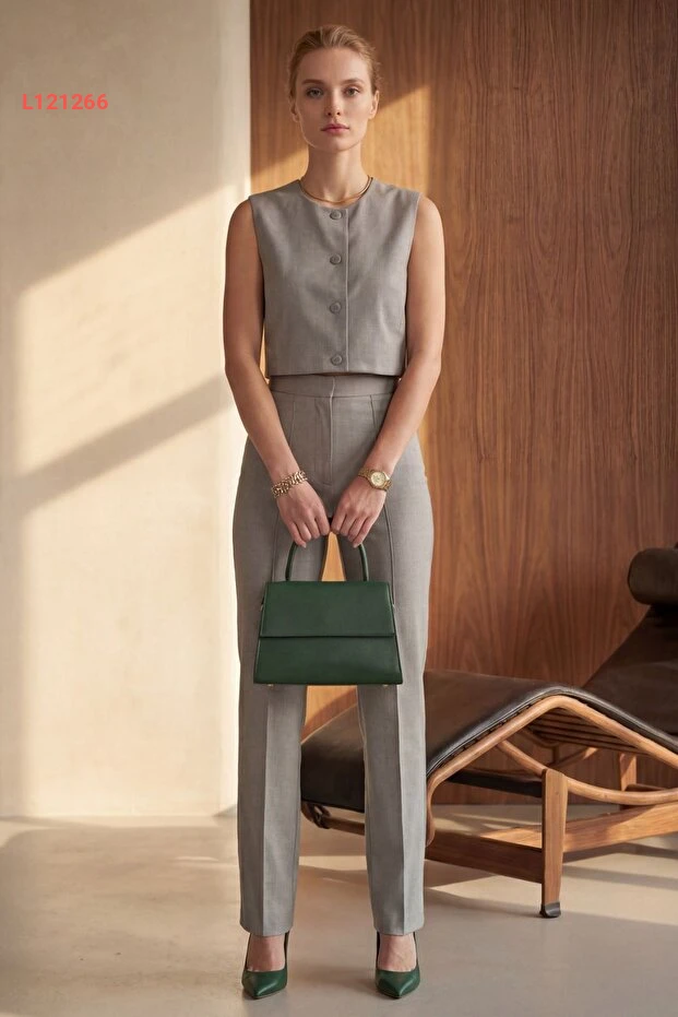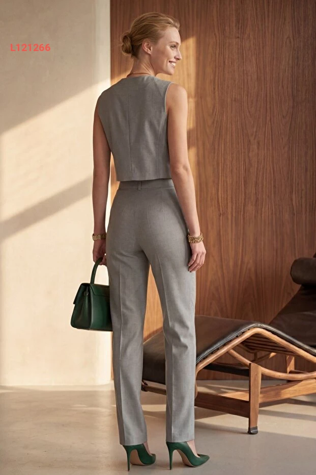 مجموعة الأزياء العصرية: سترة قصير بياقة دائرية وسروال عالي الخصر
