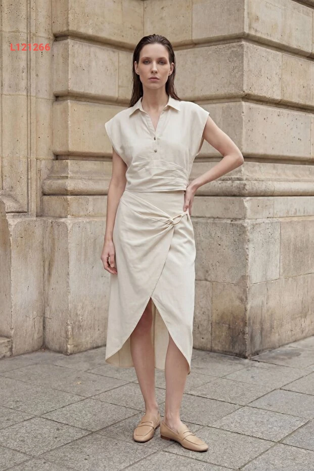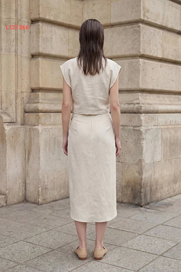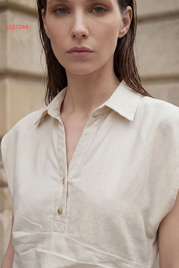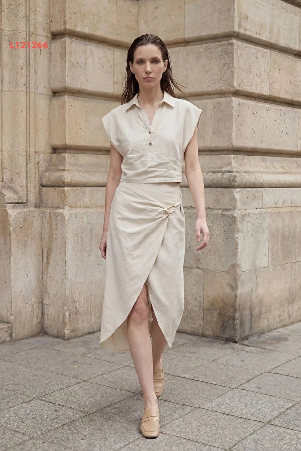 طقم قميص بقلنسوة من الكتان المرتفع الخصر بأسلوب عصرية