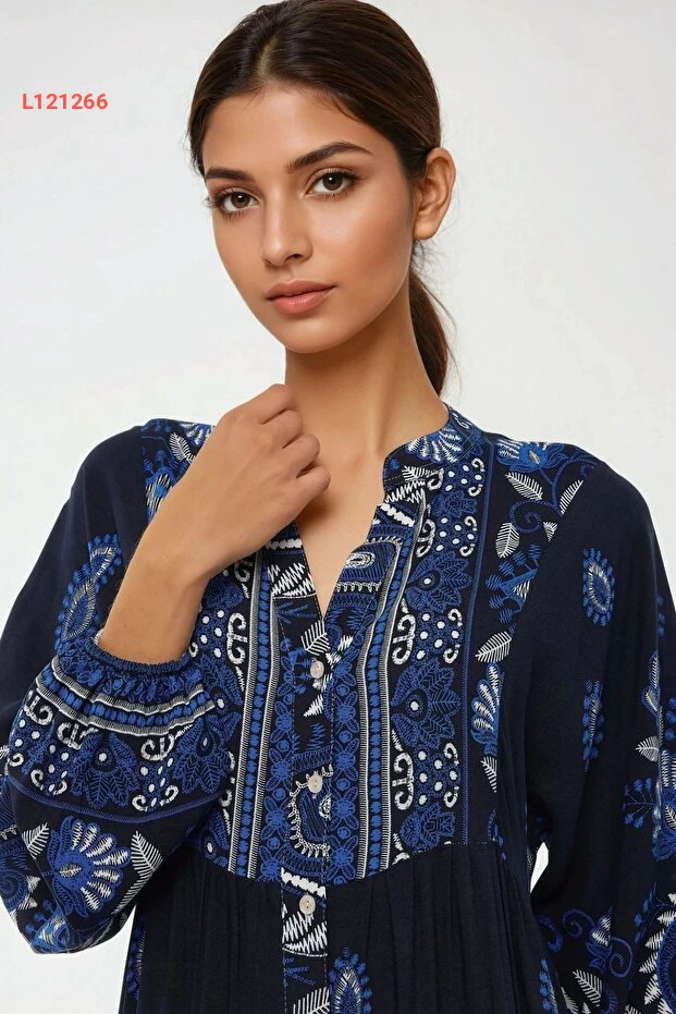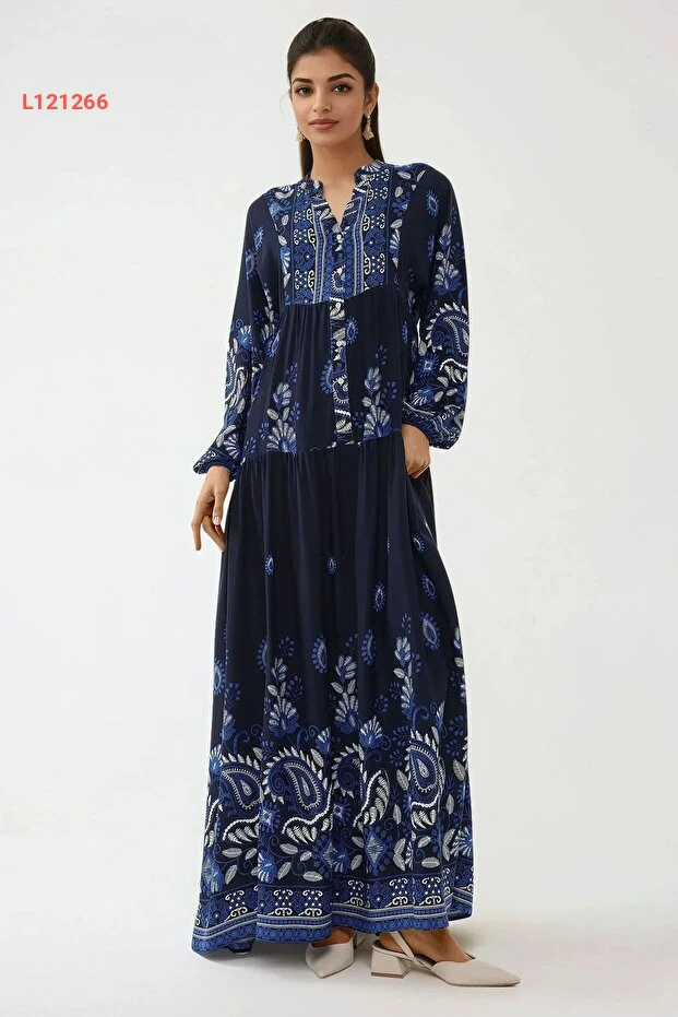 اكتشفي أناقتك مع فستان Hiccup المطبوعة بأكمام طويلة، المصنوع من القماش الفيسكون الناعم الذي يوفر الراحة والأناقة في كل مناسبة. تصميمه المحتشم يضمن لكِ مظهراً رائعاً وعصريًا، بينما الألوان الجذابة والمطبوعات المميزة تضيف لمسة فريدة إلى إطلالتك.