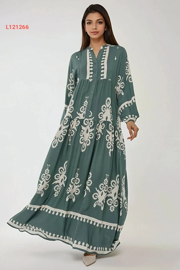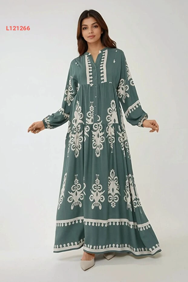 استمتعي بأناقة عصرية مع فستان Hiccup المطبوع بأكمام طويلة، المصنوع من قماش الفيزكون عالي الجودة. يجمع هذا الفستان بين الراحة والتصميم المحتشم، مع تفاصيل أنيقة تضمن لك إطلالة مميزة في كل مناسبة. ارتدي هذا الفستان وثقي بنفسك مع كل خطوة!