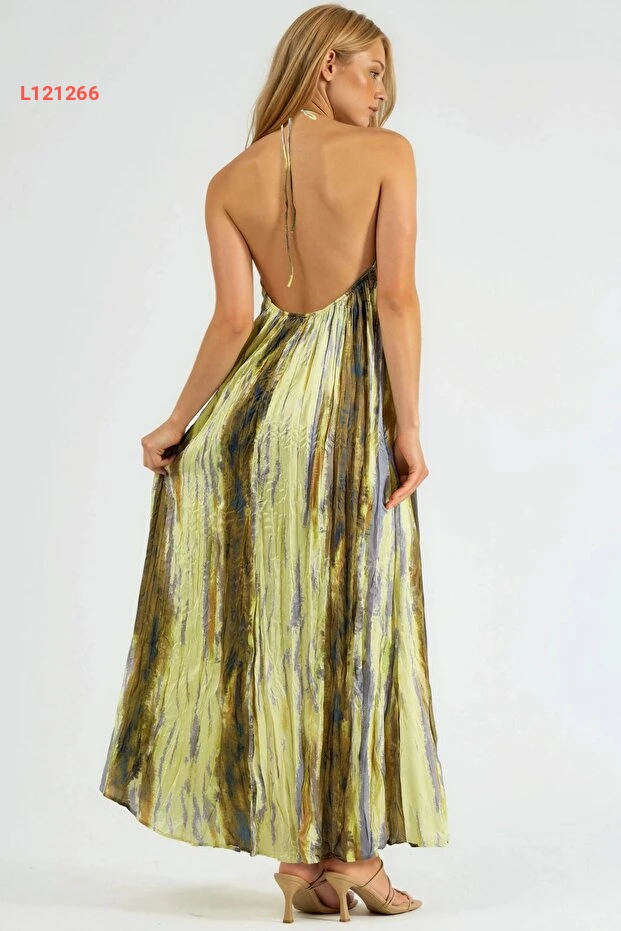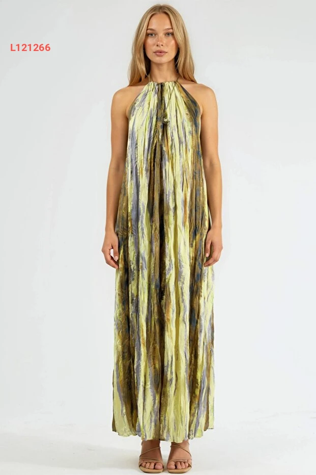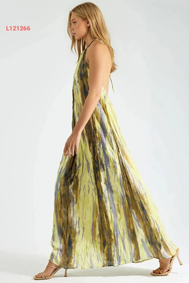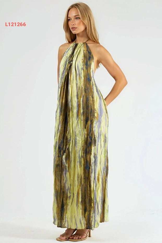 Hiccup QU STYLE Dokulu Desenli Halter Yaka Maxi Elbise عالي الجودة. مثالي للاستخدام اليومي مع متانة وتصميم ممتاز.