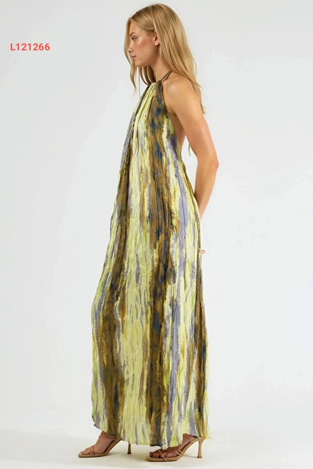 Hiccup QU STYLE Dokulu Desenli Halter Yaka Maxi Elbise