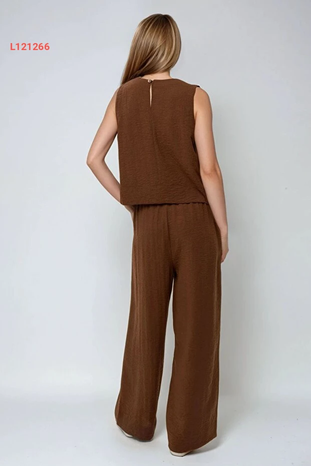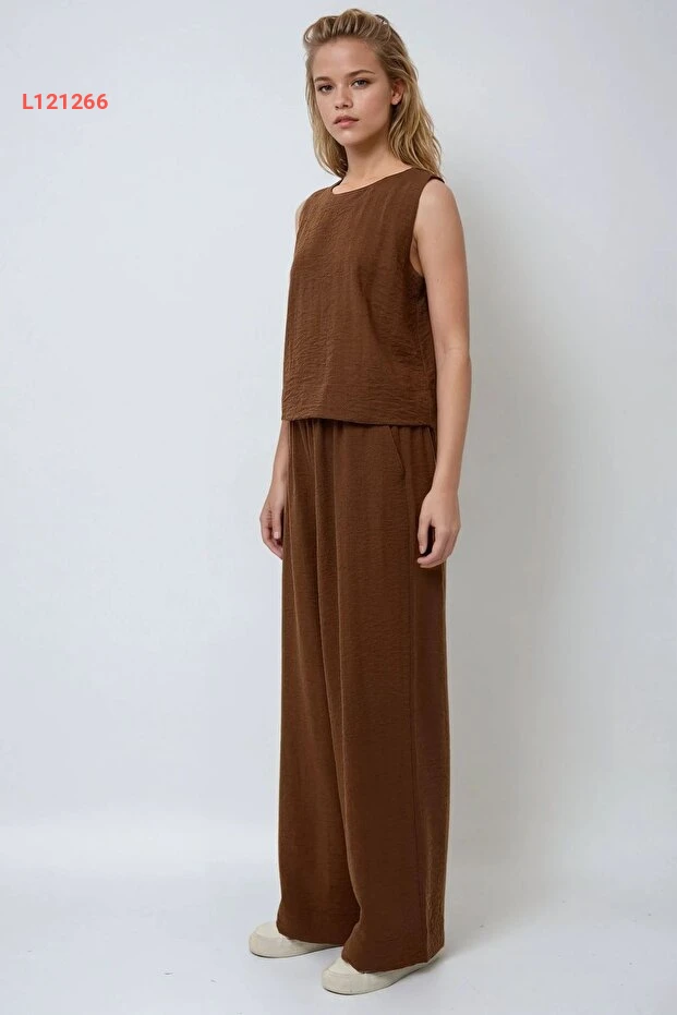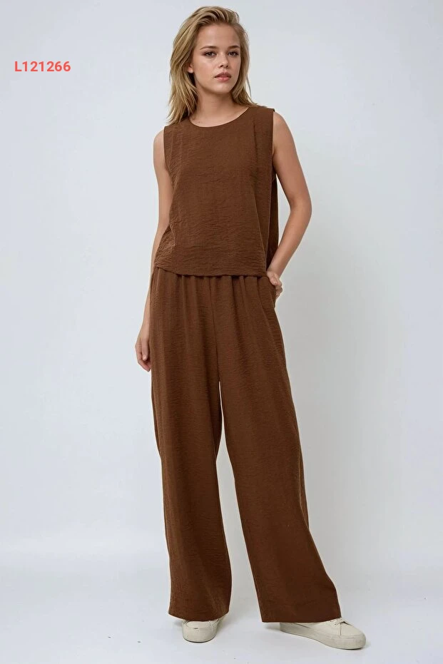 بلوزة بتصميم كتان مع بنطال مطاطي على الخصر - طقم مكون من قطعتين