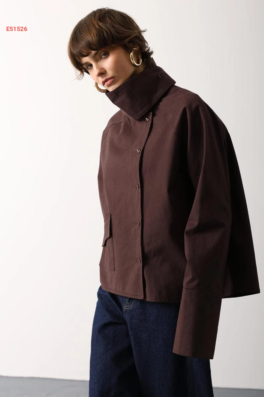 جاكيت قبة عالية بأزرار جانبية
