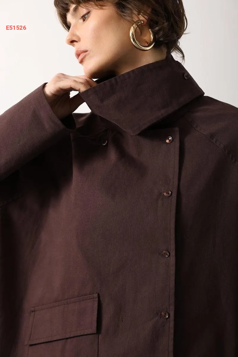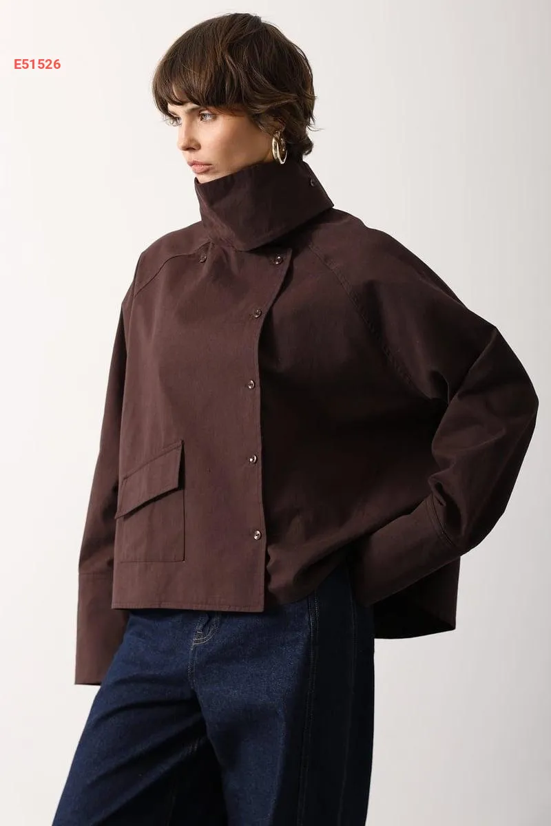 جاكيت بأزرار جانبية وياقة عالية