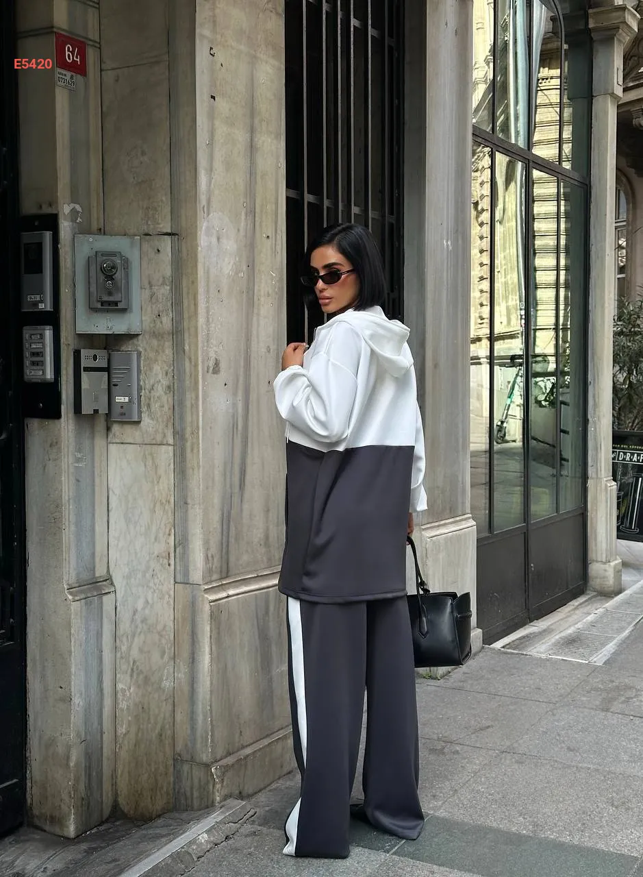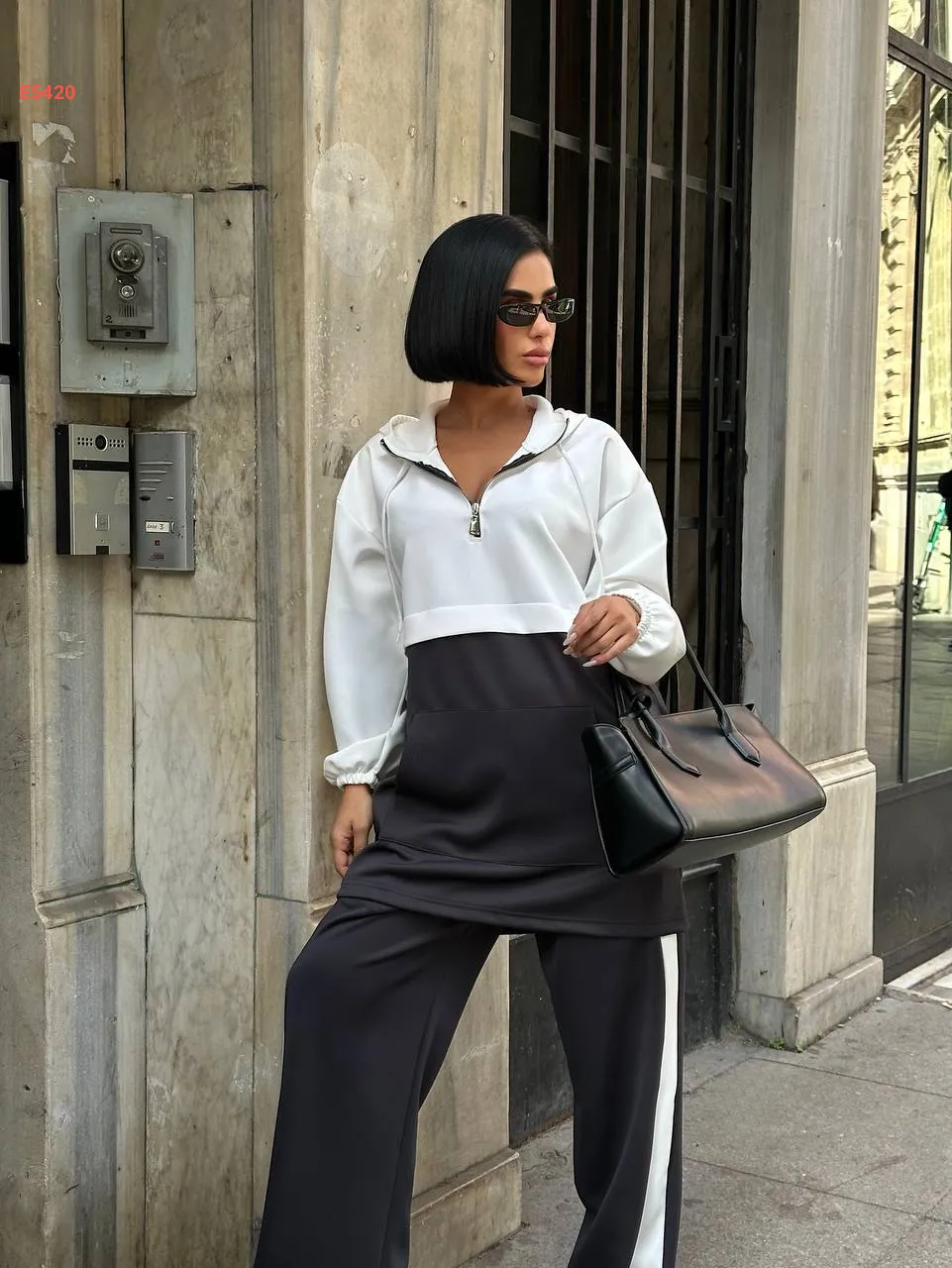 بيجامة بياقة مرتفعة ، مع سحاب ، بغطاء رأس