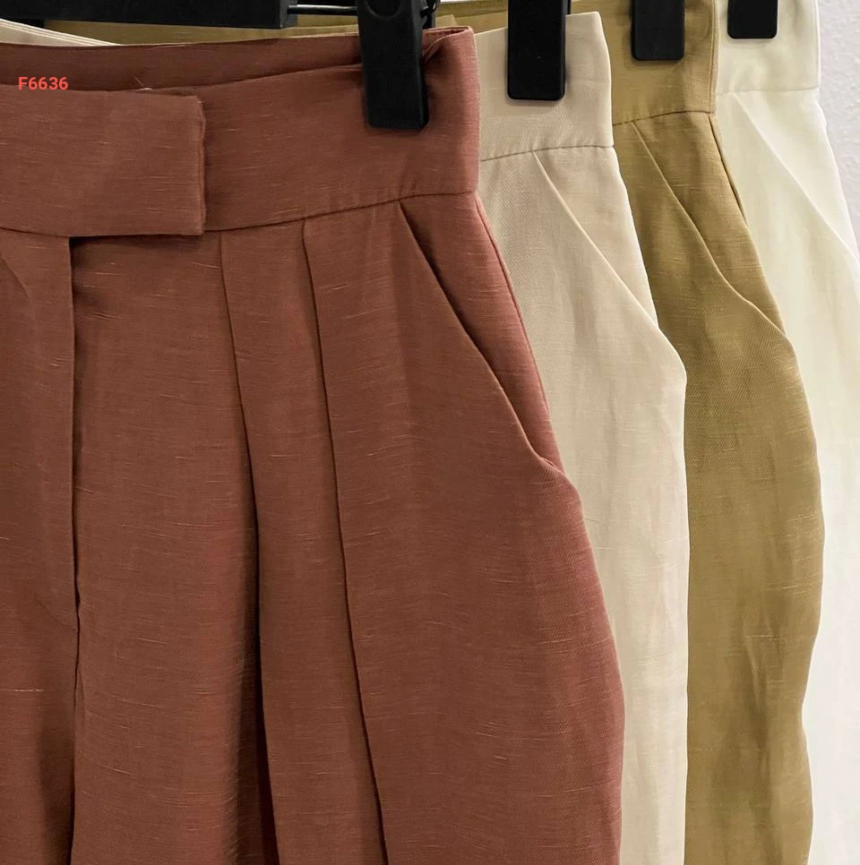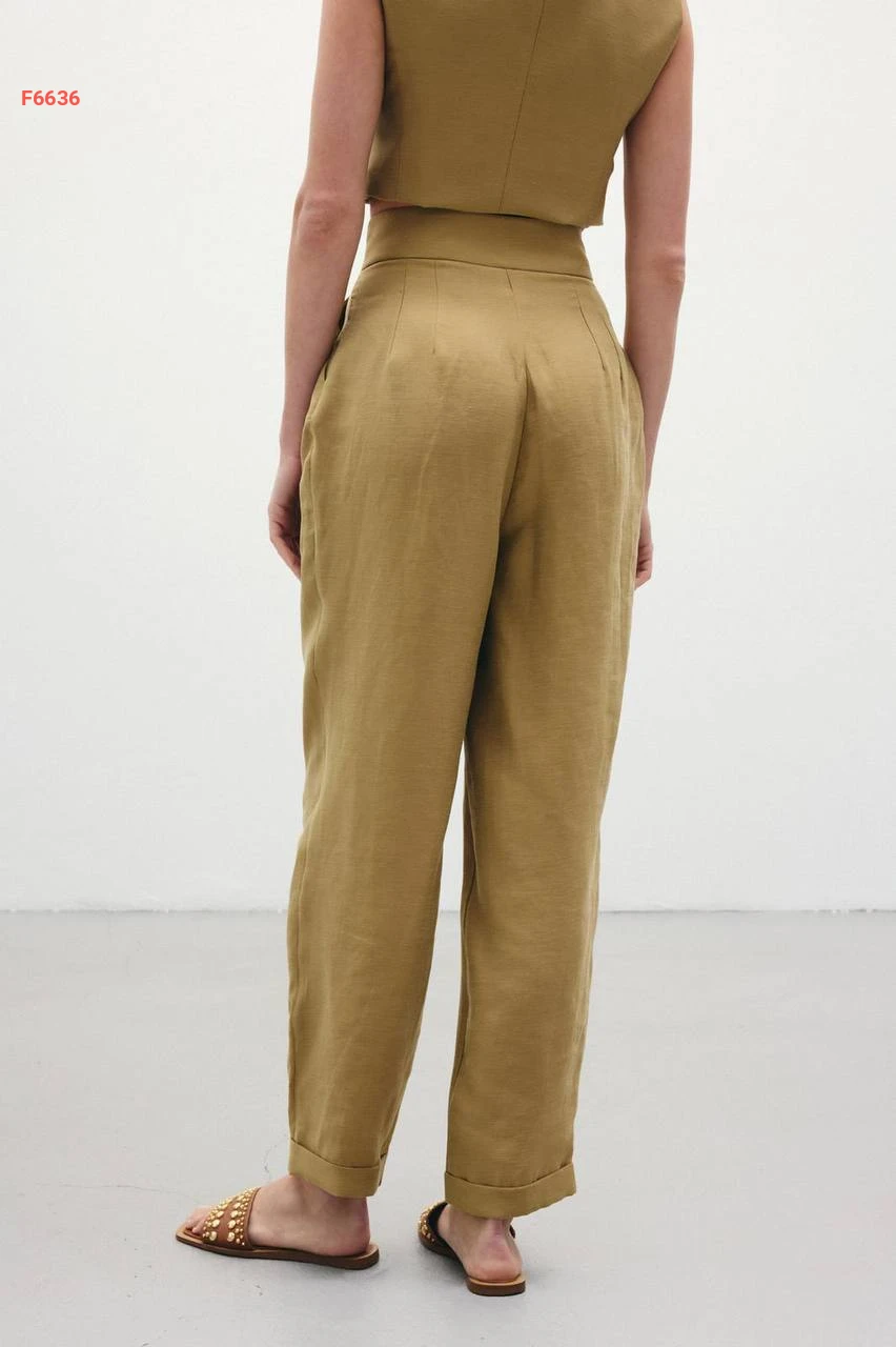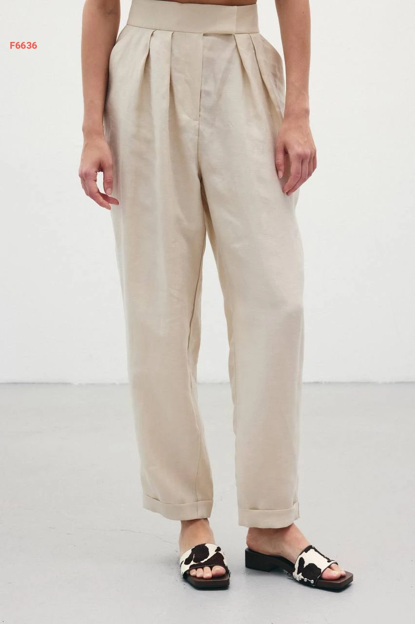 بنطال كتان خصر عالي