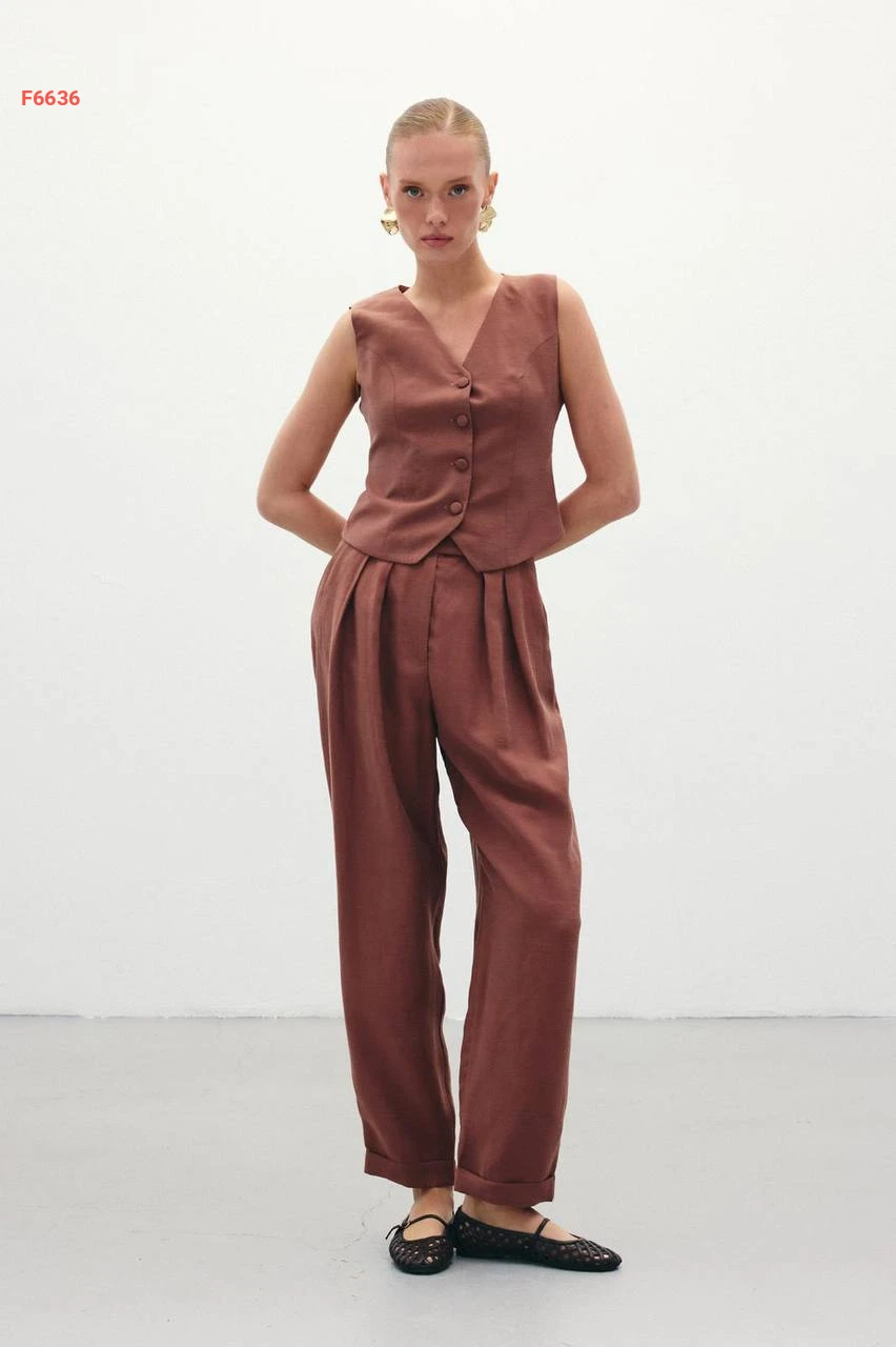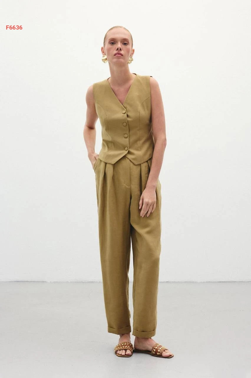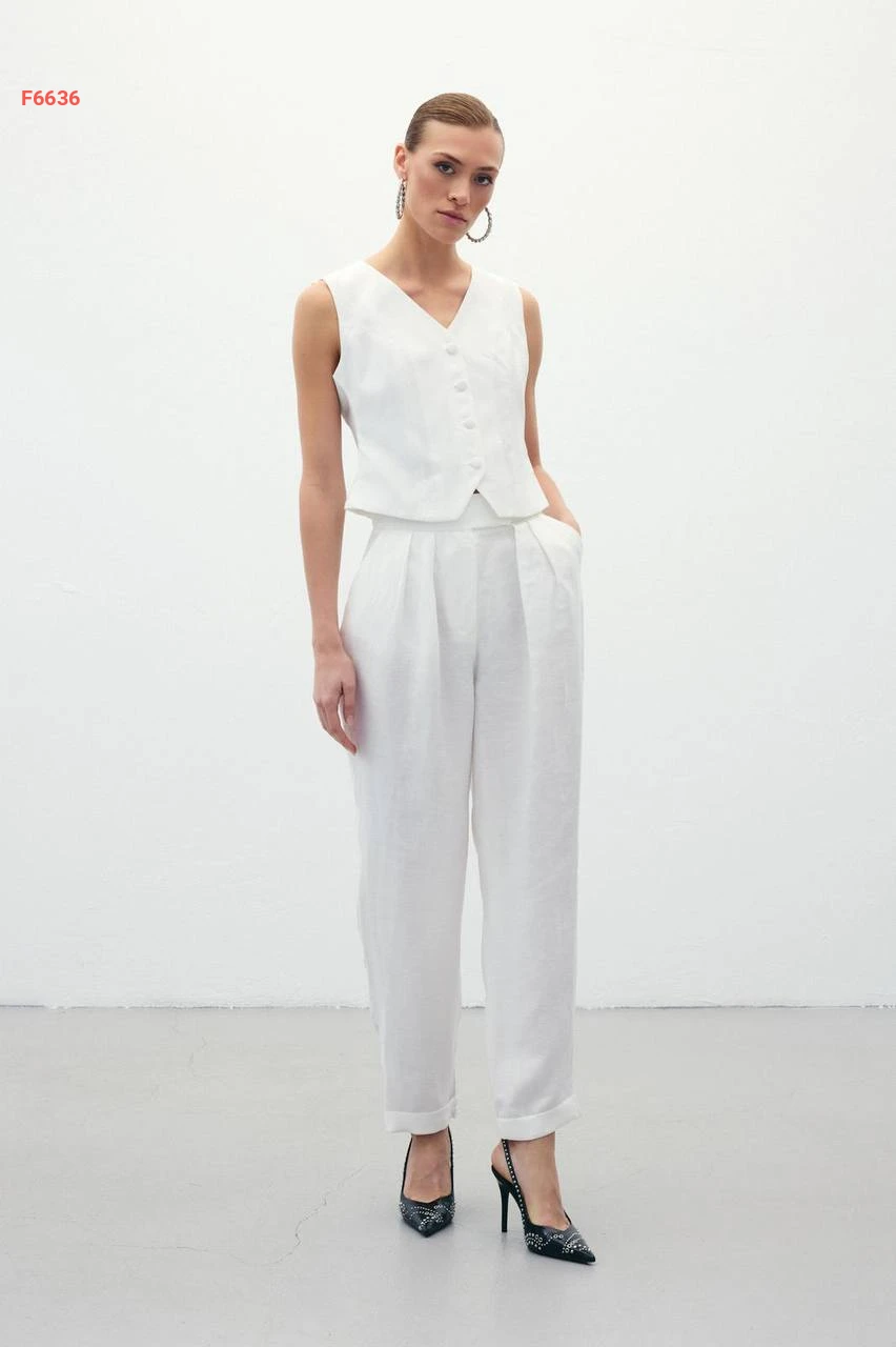 بنطال كتان خصر عالي