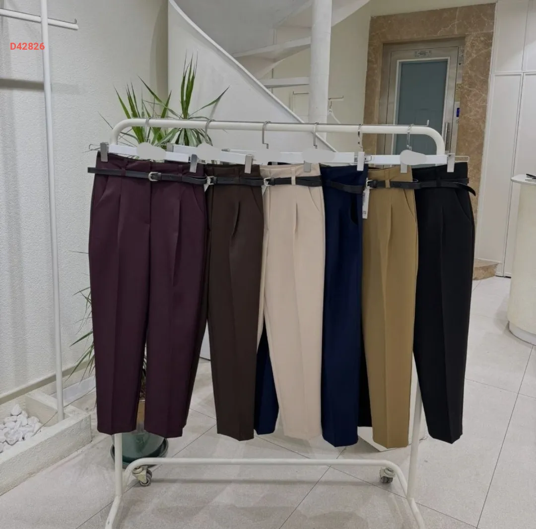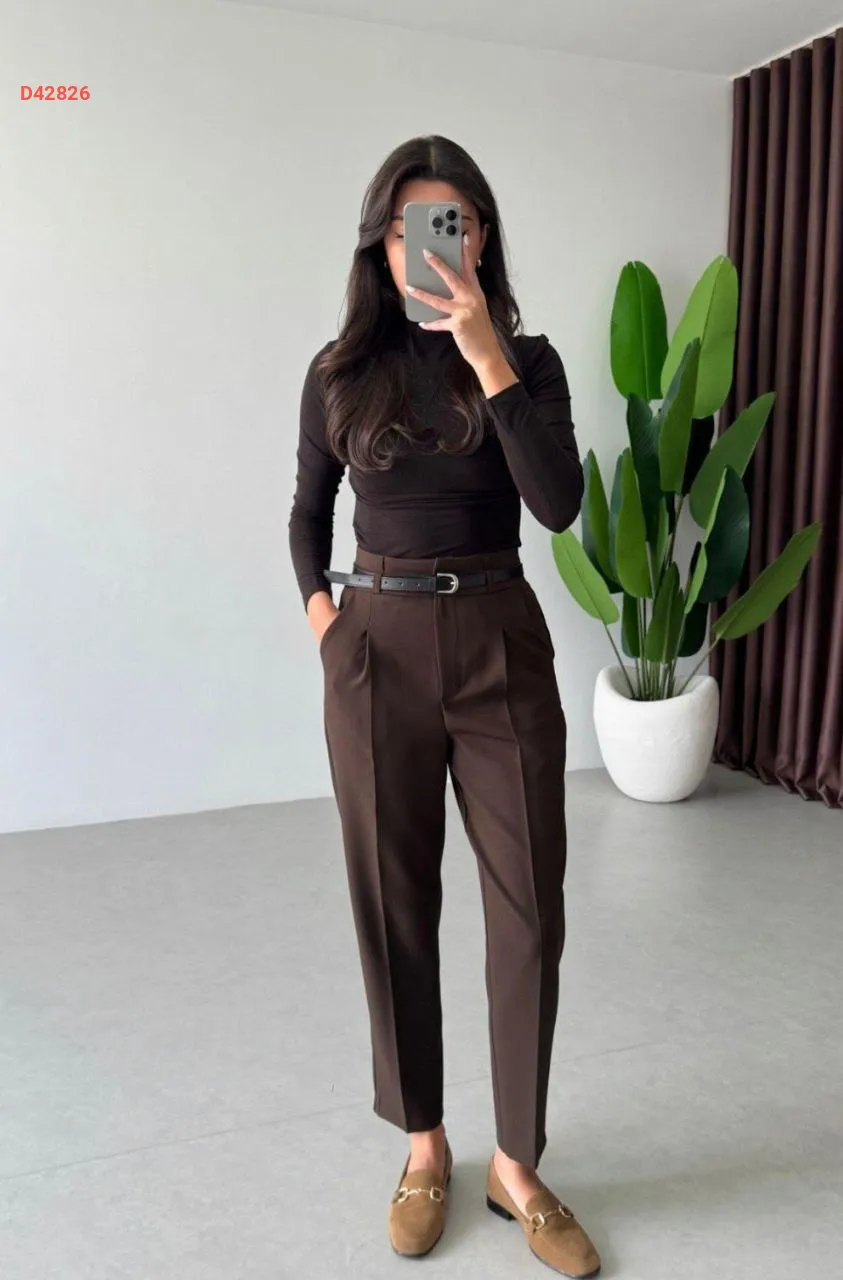 بنطال سادة خصر عالي، مع حزام