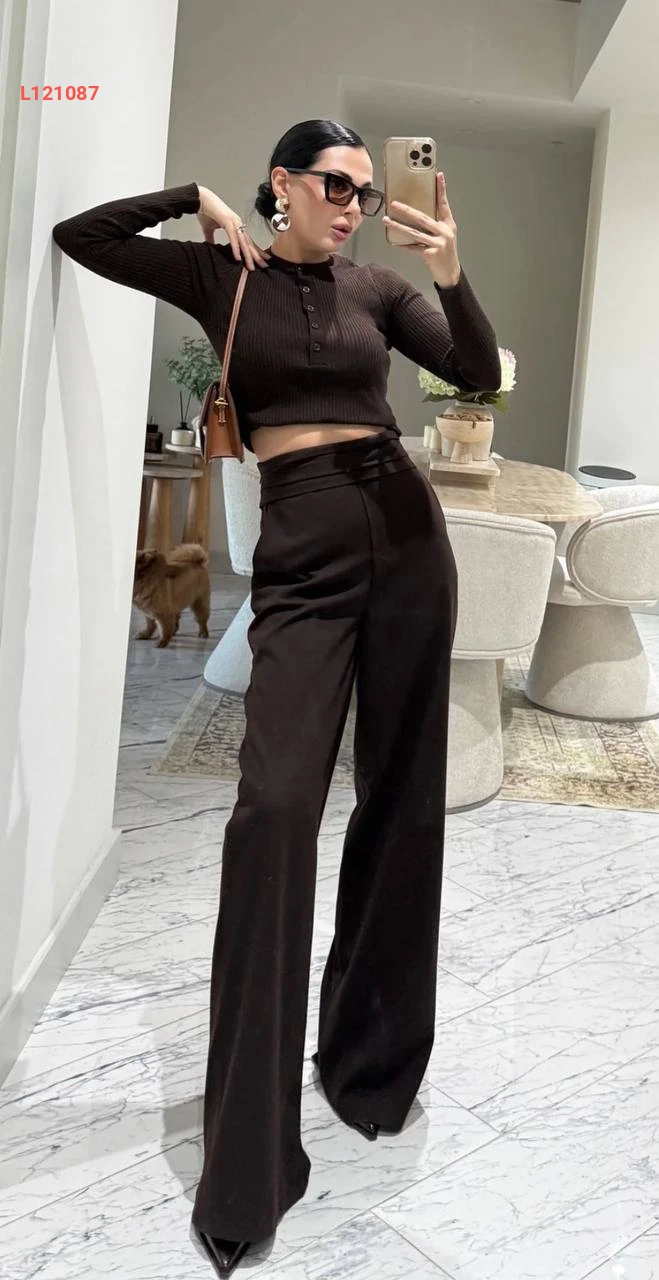 بنطال عريض بخصر عالي
