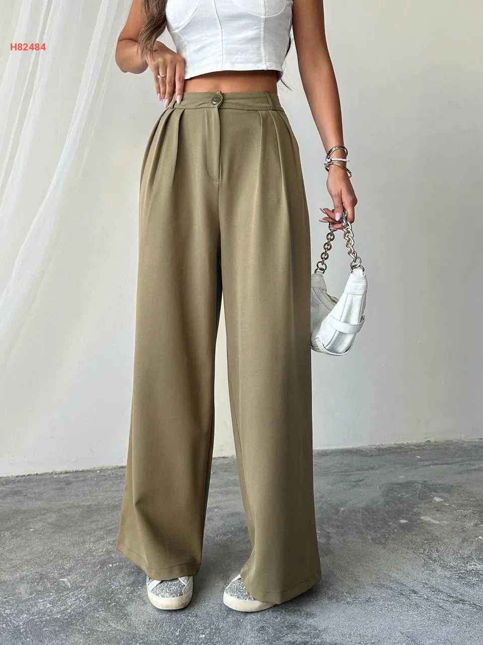 بنطال واسع بخصر عالي