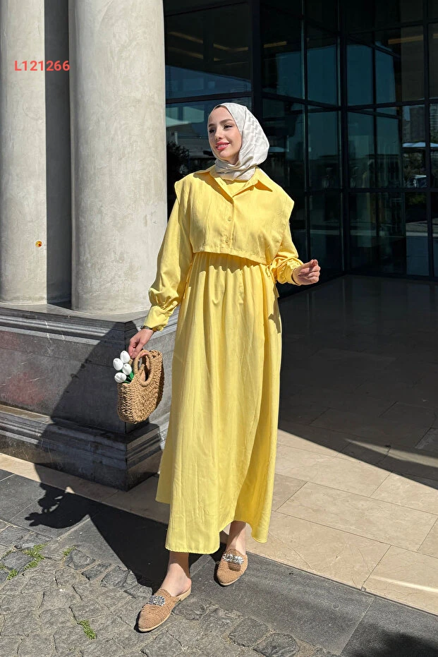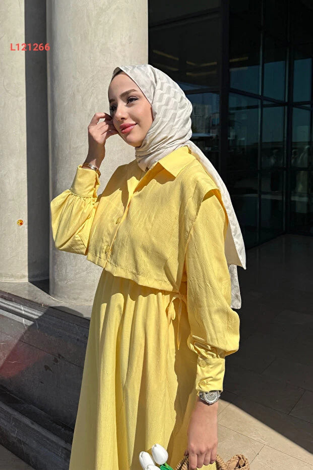 اكتشفي أناقتك مع فستان تسيتور دياري ذو الأكمام الواسعة بلون الأصفر المشرق، المصمم خصيصًا ليضمن لك الراحة والجمال في كل مناسبة. يجمع بين الأناقة الكلاسيكية والتفاصيل العصرية، مما يجعله قطعة أساسية في خزانة ملابسك لتعزيز ثقتك بأناقتك.