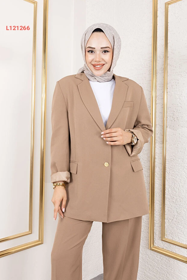 استمتع بأناقتك الشخصية مع طقم "Tesettür Dünyası Dore Blazer" بلون البيج الهادئ، الذي يجمع بين الأناقة والراحة. تصميمه العصري وقصته الملفتة تعزز من إطلالتك في كل المناسبات، بينما يوفر لك شعورًا بالراحة والثقة. اجعلي هذا الطقم جزءًا من خزانة ملابسك لأسلوب متألق لا يُنسى!
