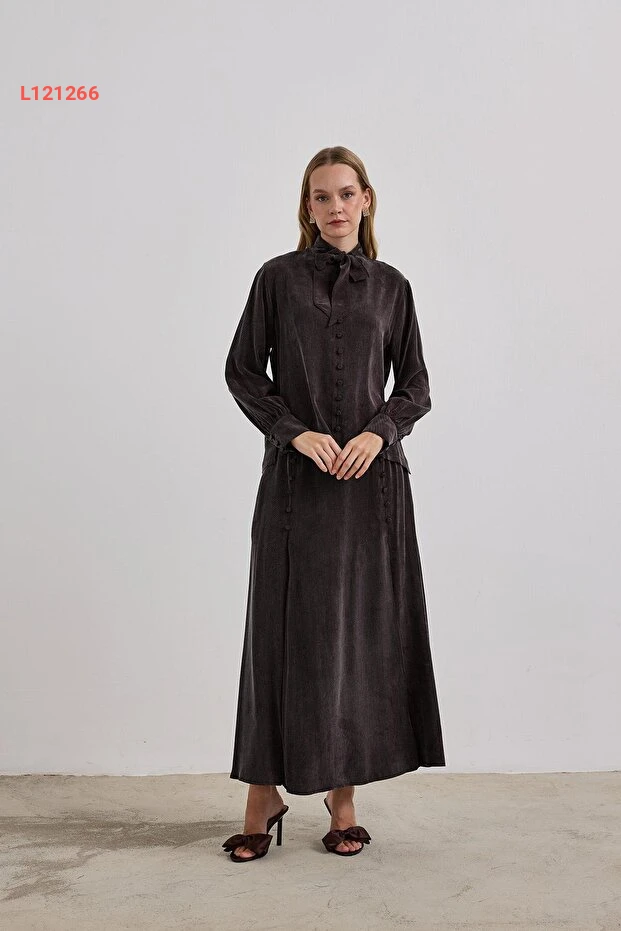 تألقي مع طقم "هيلاء جميلة" بلون بني جذاب، الذي يجمع بين الأناقة والراحة. يتميز بتنورة مزودة بأزرار تضيف لمسة عصرية، مما يجعله الخيار المثالي لمناسباتك اليومية أو الاحتفالية. اختاري هذا الطقم لإطلالة مميزة تعكس أناقتك وتألقك.