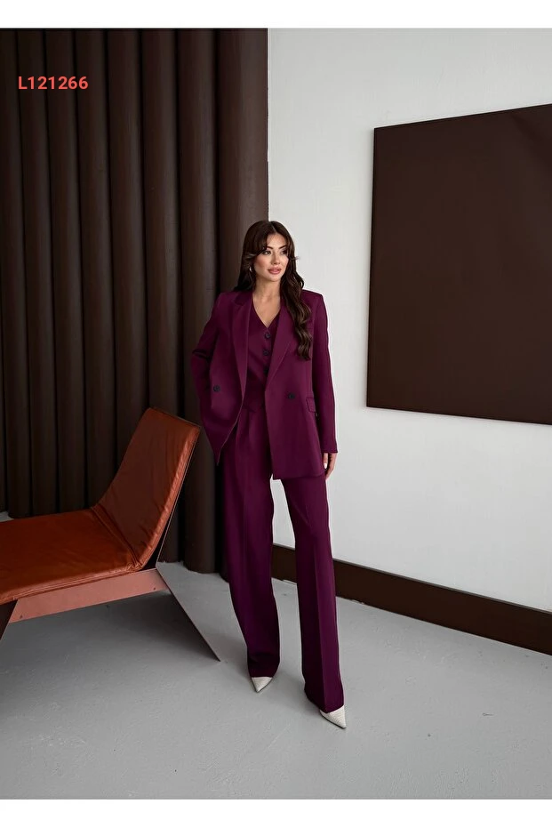 بدلة نسائية مكونة من سترة وأكمام فضفاضة وبنطال بلون المردي