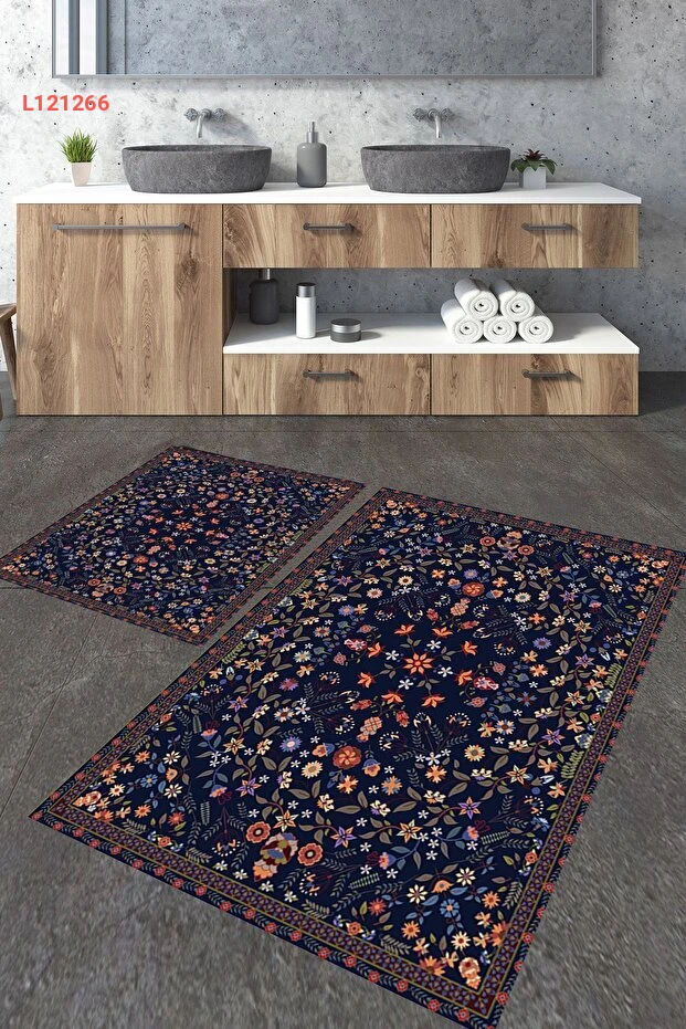 مجموعة سجادات الحمام الكبيرة ذات التصميمين - هوميكو إتنيك 2 قطعة