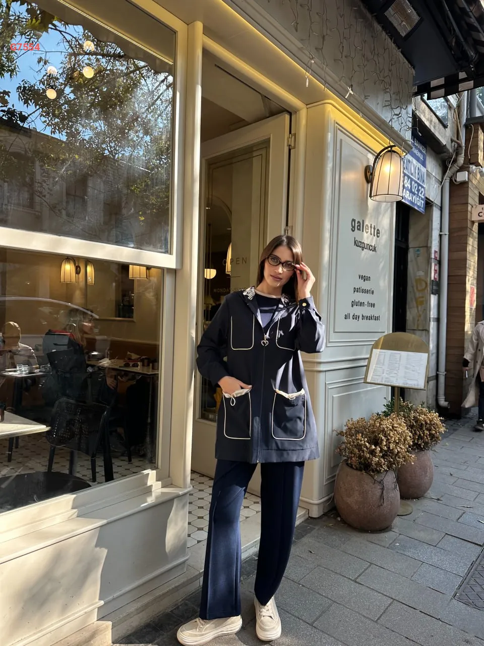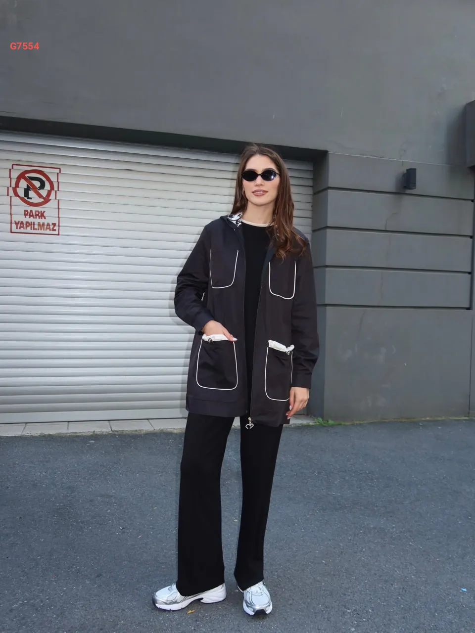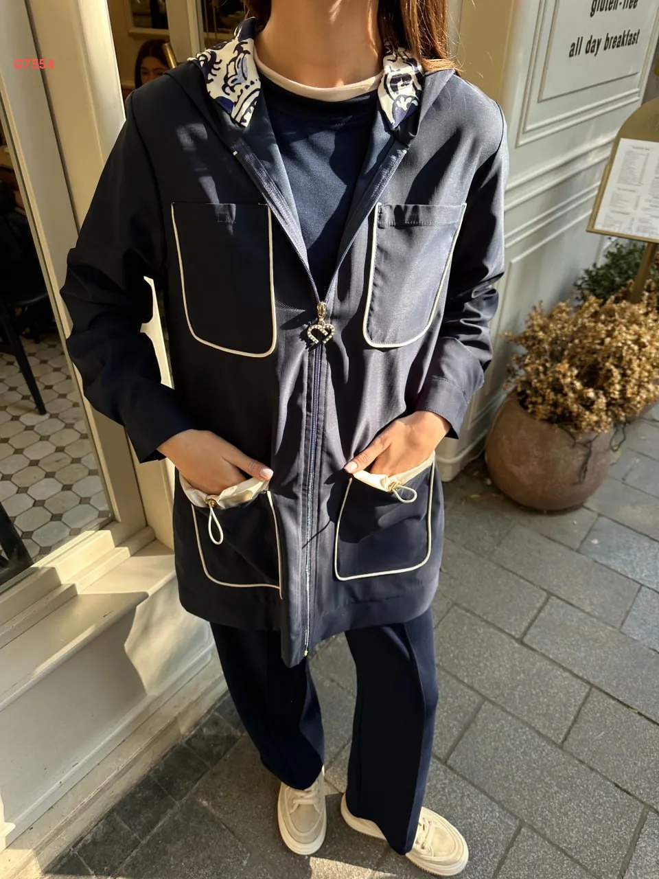 جاكيت بسحاب، مع جيب عريضة ، بغطاء رأس