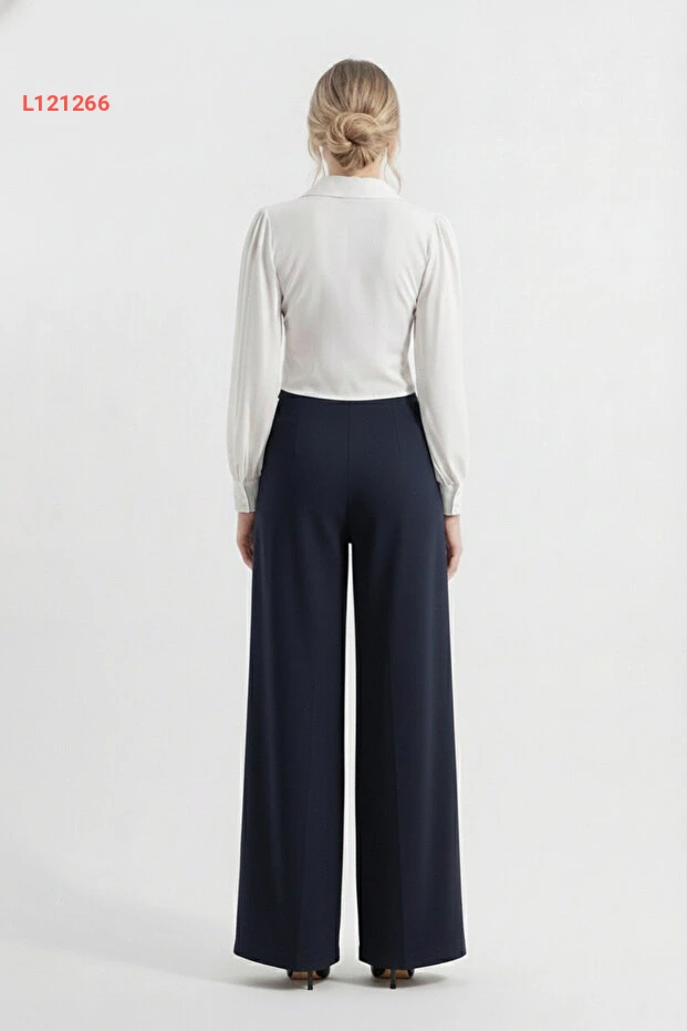 بناطيل بالازو عالية الخصر بموضة دانتيل من HOX’S - كحلي