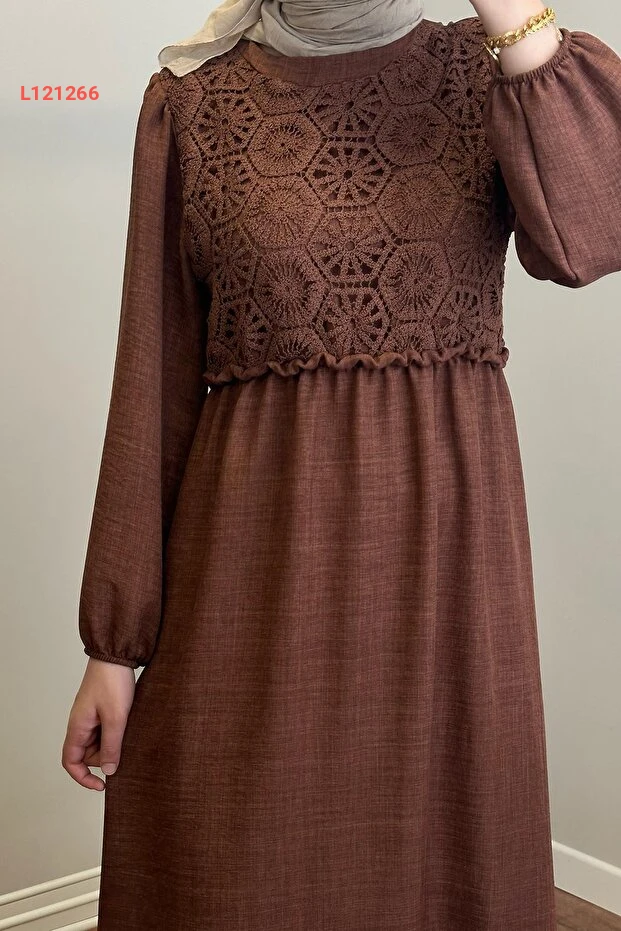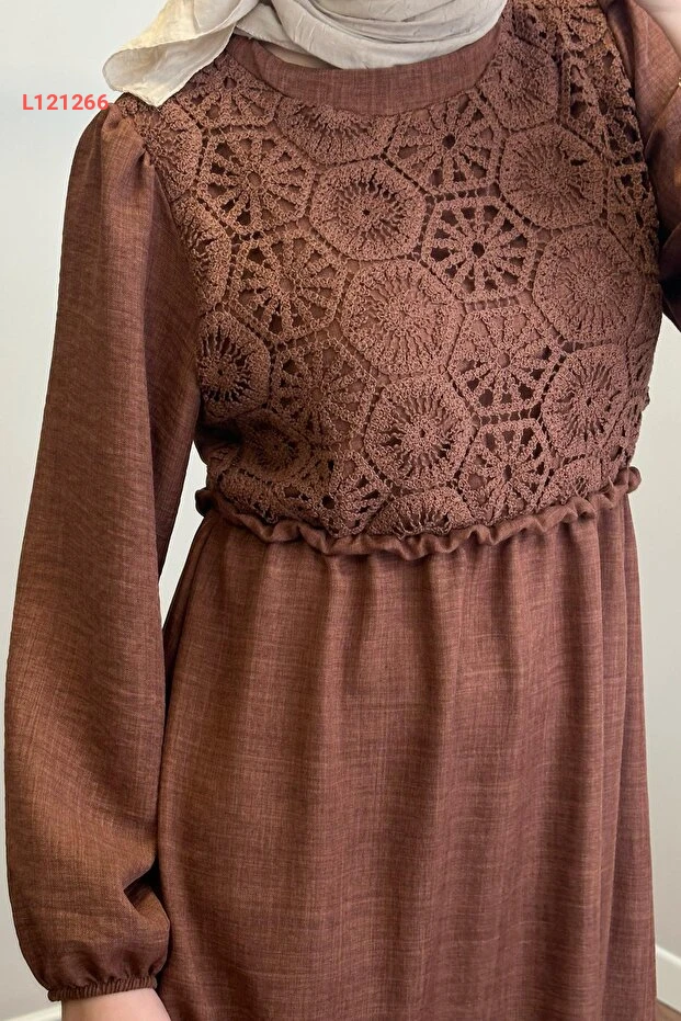 استمتع بإطلالة أنيقة مع فستان Hülya Keser Birgül باللون البني، الذي يجمع بين الراحة والأناقة. يُظهر تصميمه الفريد تفاصيل دقيقة، مما يجعله الخيار المثالي لمناسباتك الخاصة أو للخروجات اليومية. ارتديه مع إكسسواراتك المفضلة لتكملي إطلالتك بأسلوب مميز وجذاب.