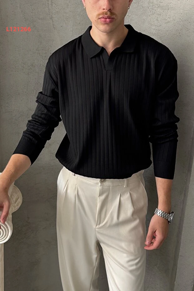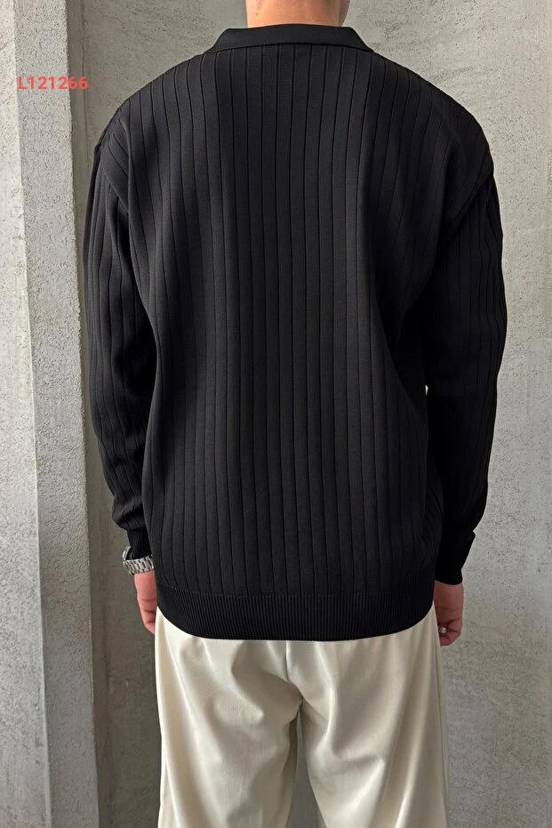 كنزة ترايكة بأكمام طويلة وبولود مزدوج للرجال للأزياء الواسعة