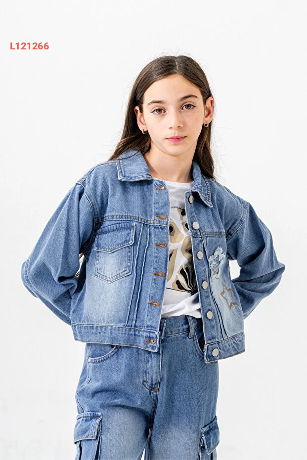 ارتقي بأناقة ابنتك مع جاكيت GİYİCEM TEKSTİL Nakışlı Kot! مصمم بجودة عالية، يجمع بين الراحة والأناقة، مع تطريز مميز يضيف لمسة من الفخامة. مثالي لمختلف الإطلالات، هذا الجاكيت سيجعلها تشعر بالثقة والتميز في كل مناسبة.