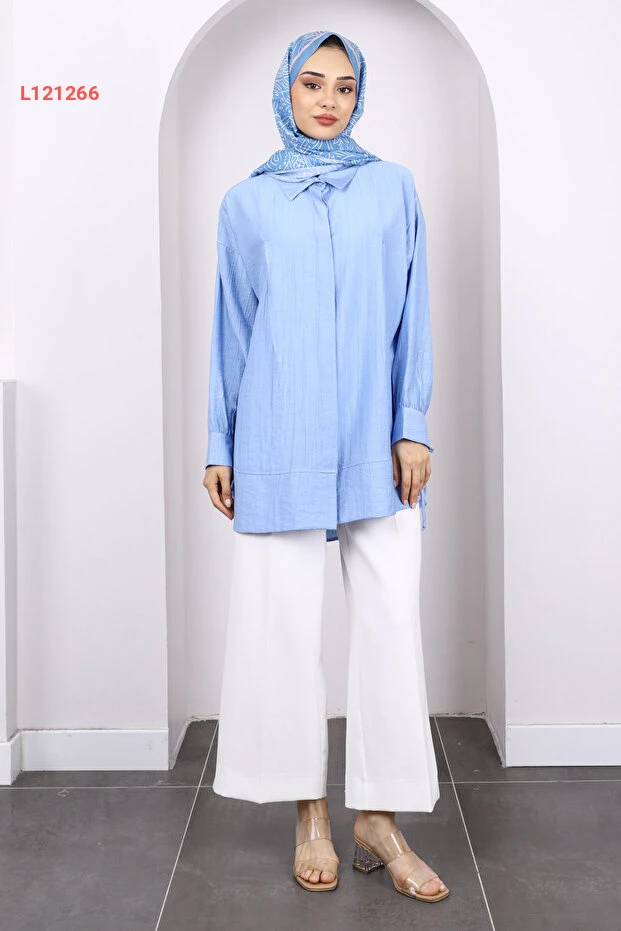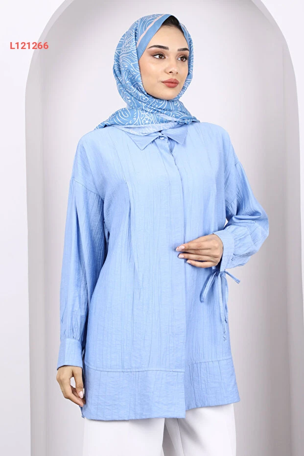 تألقي بمظهر أنيق ومريح مع تونيك İmajButik Bebe مزيج من اللون الأزرق الجذاب وتصميم الرباط الجانبي الذي يوفر لكِ حرية الحركة. مثالي لجميع المناسبات، حيث يمنحكِ لمسة عصرية مع إحساس الفخامة. اختاريه لإطلالة محسنة تناسب كل يوم!