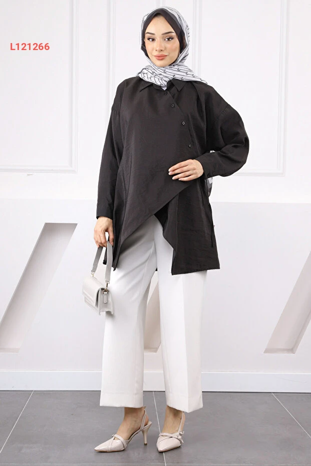 تونيك مودال أسود بتصميم جانبي للربط من إيماج بيوتيك