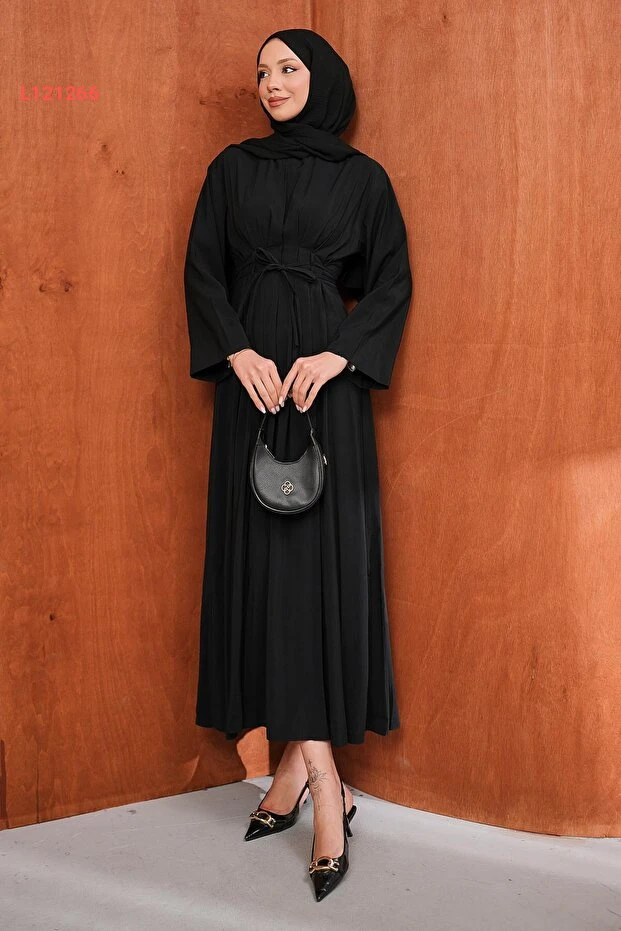 ألوان الأسود العميق والمظهر الأنيق يجتمعان في فستان "İmajButik" الذي يتميز بحزام الخصر المتكيف وديكور الطيات الرائعة. يضفي هذا التصميم النابض بالحياة لمسة من الأنوثة والجاذبية، مما يجعله الخيار المثالي للمناسبات الخاصة أو الخروجات اليومية. اجعلي إطلالتك مميزة مع هذا الفستان الذي يجمع بين الراحة والأناقة بكل سلاسة.