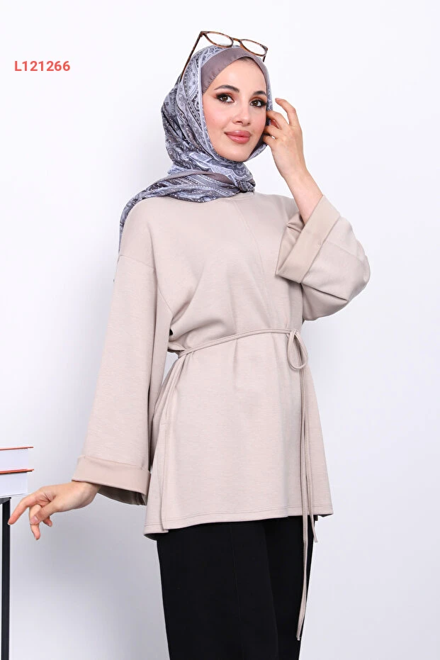 تألقي بأناقتك مع تونيك İmajButik بلون البيج الجذاب، الذي يتميز بفتحات جانبية عصرية تسمح بحركة سهلة وراحة مثالية. يتميز بتصميمه العصري وحزام الخصر الذي يبرز أنوثتك، مما يجعله الخيار المثالي لإطلالة مميزة تناسب جميع المناسبات.