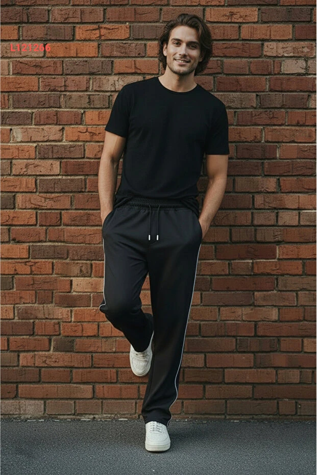 سروال رياضي واسع ثلاثي الألوان بتفاصيل عصرية - خفيف ومرن