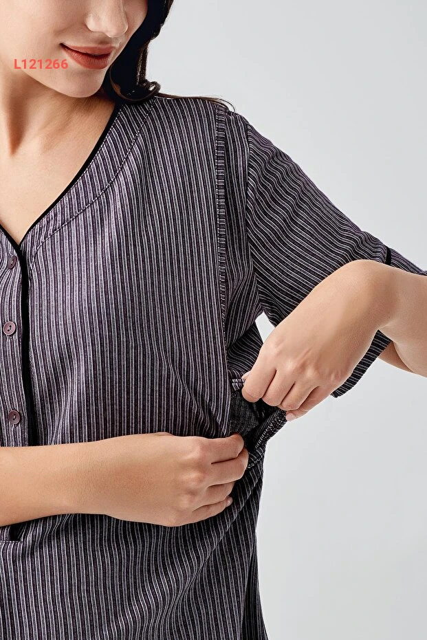 بيجامة حوامل قصيرة الأكمام من الفيسكوز المرن مع روب، موديل 14406