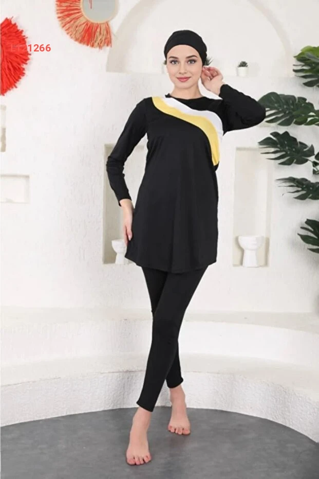 مايو سباحة نسائي مغلق كامل الأكمام مع شريط أصفر مميز