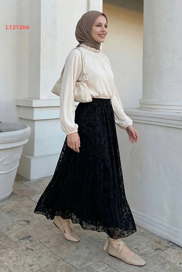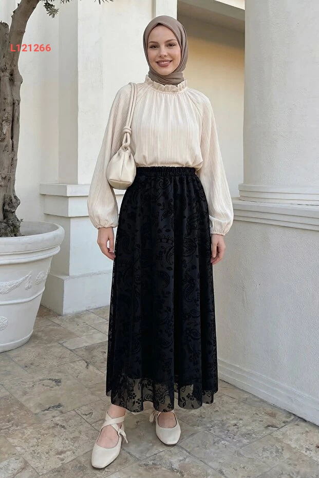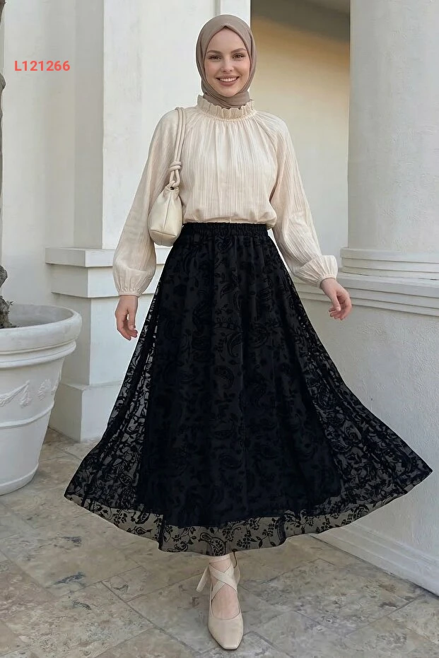 أضف لمسة من الأناقة إلى خزانتك مع حقيبة InStyle Şal Desen Siyah Flok Etek. تتميز هذه التنورة بتصميمها الفريد المزخرف والمطبوع الذي يعكس ذوقًا رفيعًا، مما يجعلها مثالية للارتداء في جميع المناسبات. مصنوع من خامات عالية الجودة، يوفر لكِ راحة وأناقة تدوم طوال اليوم.