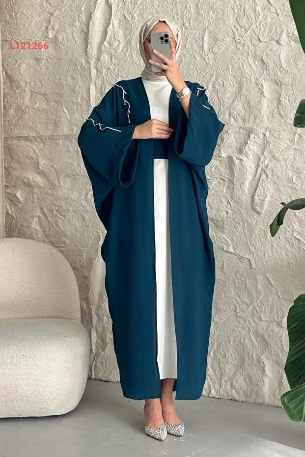 عباءة بتصميم سارماشيك مزينة بالحجارة باللون الأزرق البترولي