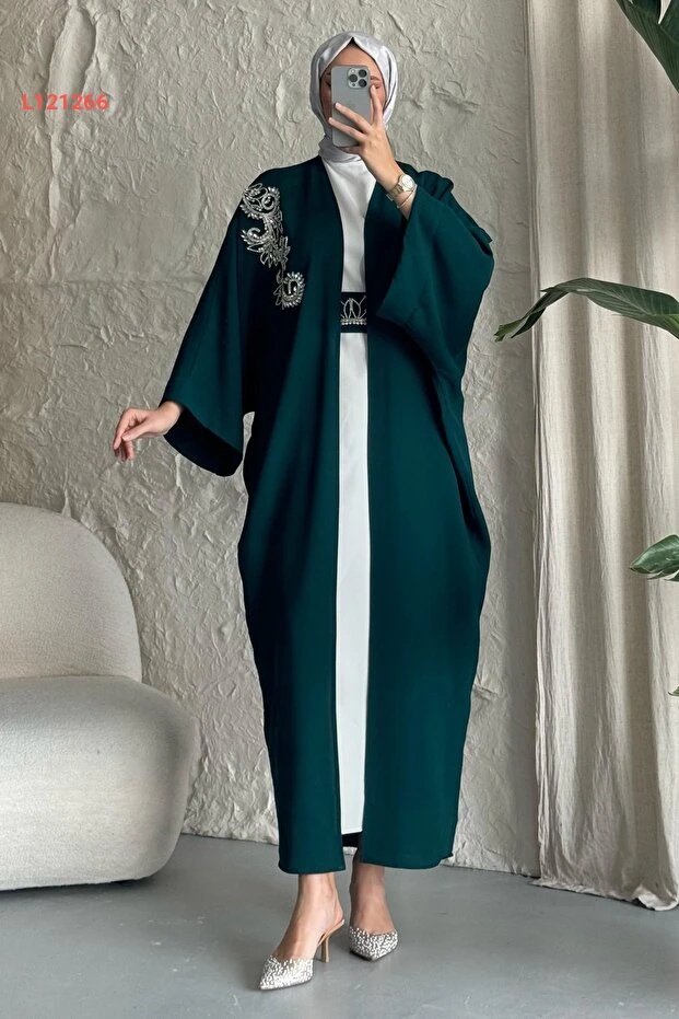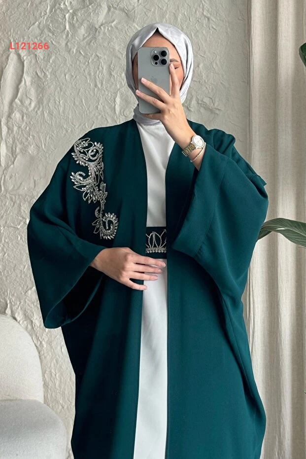 استمتع بالأناقة والجمال مع عباءة InStyle ذات اللون البترولي الأزرق، والتي تتميز بأكمامها الواسعة والسترة الفاخرة المزينة بالحجارة اللامعة. تصميمها العصري يجمع بين الراحة والأناقة، مما يجعلها الخيار المثالي للمناسبات الخاصة أو الجلسات اليومية. تألقي بإطلالة فريدة تُبرز أناقتك وتُضيف لمسة من الفخامة على مظهرك!