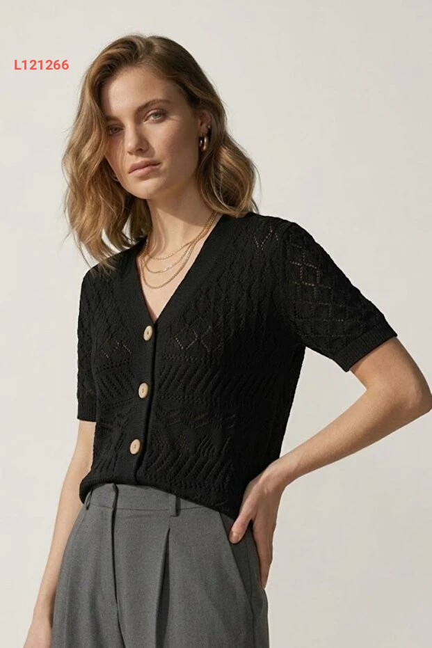سترة صيفية نسائية مصنوعة من قطن عضوي بأزرار خشبية – موديل 7256 باللون الأسود