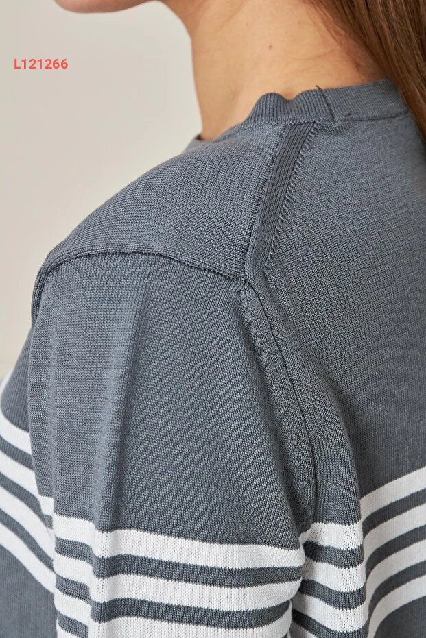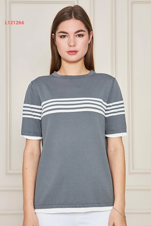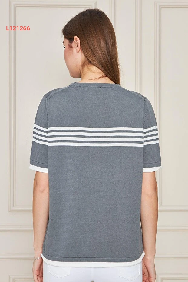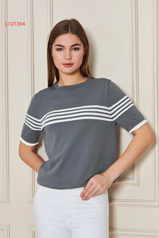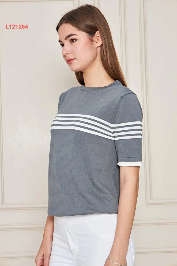 استمتعي بأناقتك اليومية مع بلوزة إيرماك الكاجوال ذات الأكمام القصيرة والياقة الدائرية. تتميز بتصميمها الشريطي الجذاب بلوني الفحمي والإكرو، مما يمنحك إطلالة عصرية ومريحة في كل مناسبة. مصنوعة من ألياف عالية الجودة، توفر لكِ هذه البلوزة شعوراً بالراحة طوال اليوم.